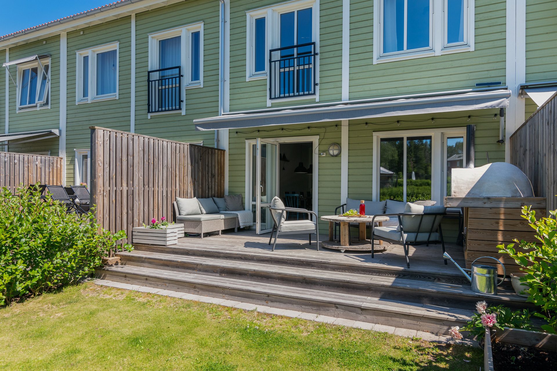 Välkomna till detta välplanerade brf-radhus med stora sociala ytor, generös altan och egen trädgård. Lägenheten har genomgående ljusa färgsättningar, stora fönsterpartier med mycket ljusinsläpp och en trevlig altan som förlänger vardagsrummet innefrån och ut. Entrévåningen med vardagsrum, kök, sovrum och badrum. Övervåning med hela fyra sovrum, badrum och klädkammare. Läget är attraktivt och barnvänligt med promenadavstånd till skola, golfbana i Samuelsdal, Källvikens skidbacke, badplats och nya affärsplatsen vid Tallen med mataffär, systembolag m.m. Vidbyggt förråd vid entrén samt två parkeringsplatser.