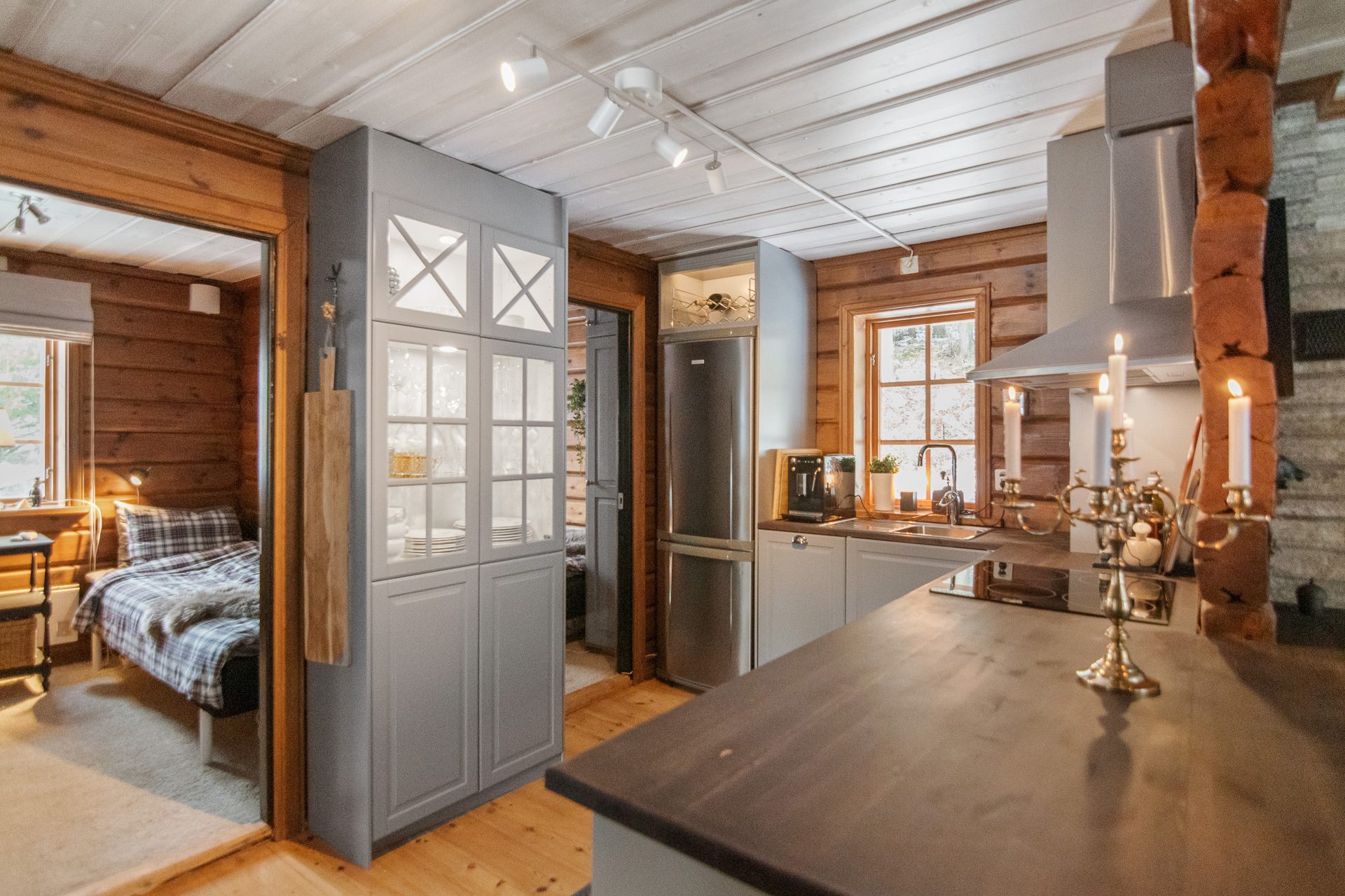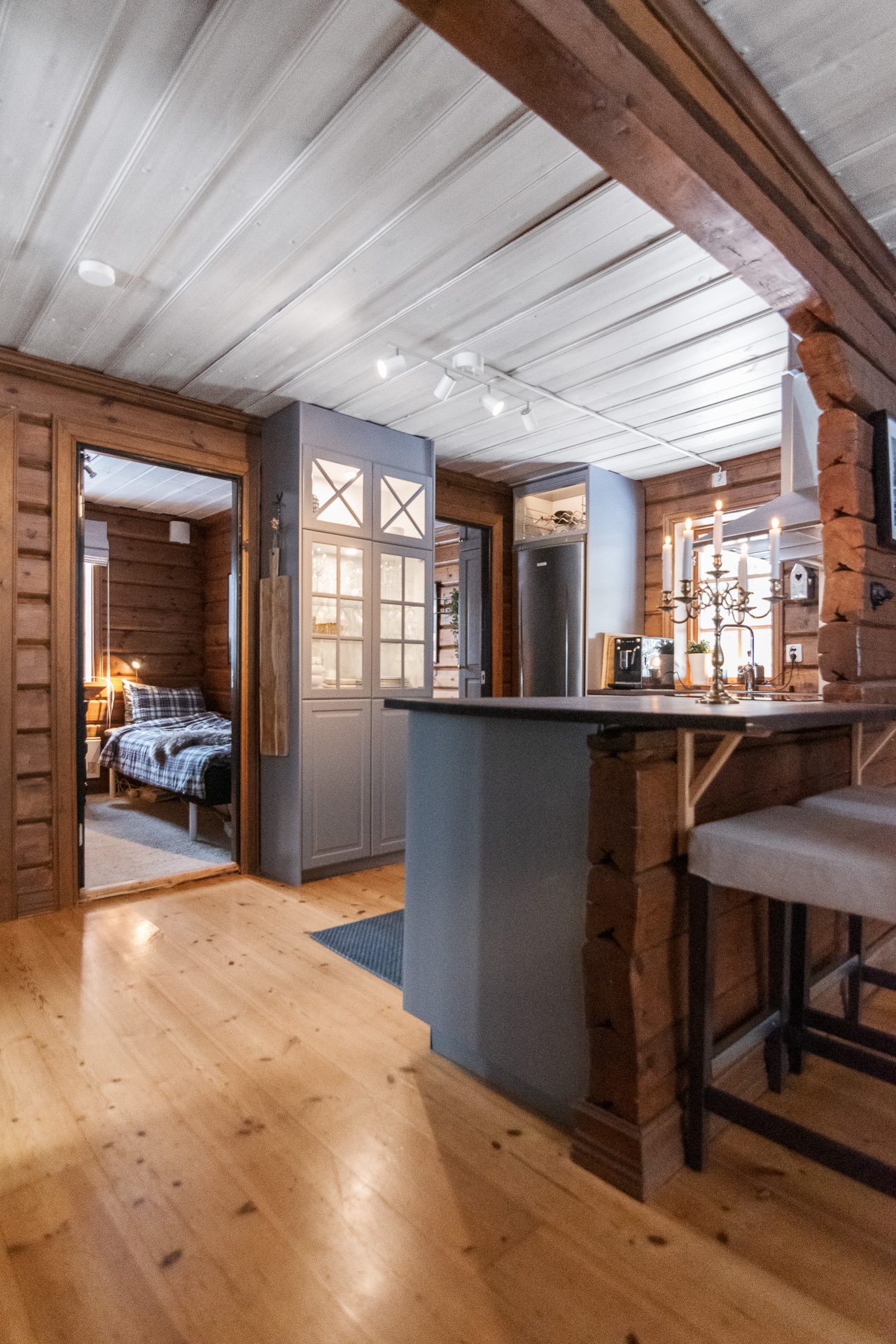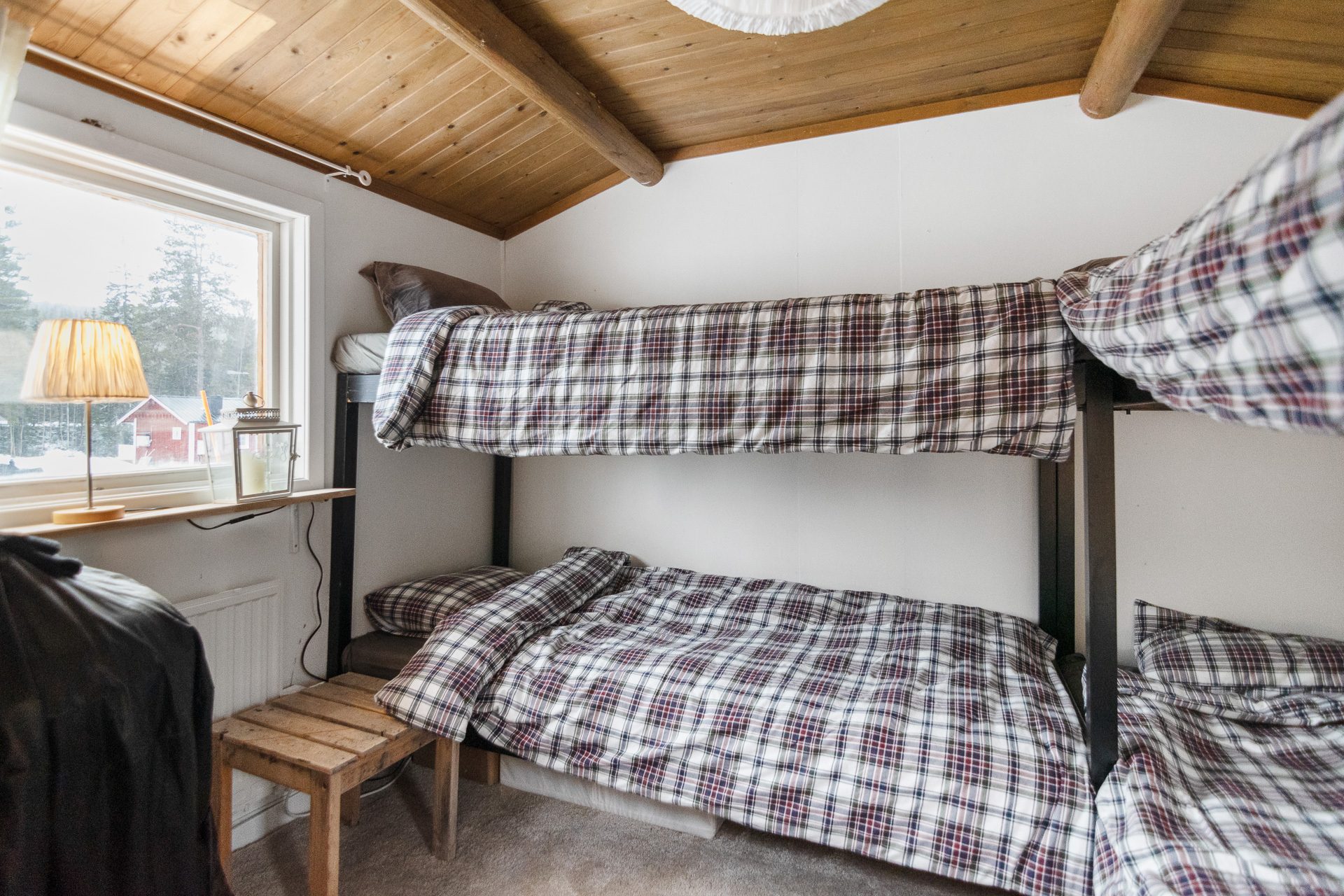 Mysig timmerstuga med attraktivt läge invid Fejmån. Stugan presenterar en öppen planlösning mellan kök och vardagsrum, tre sovrum i fil samt badrum. Separat gäststuga med fyra bäddar. Sjön, älven och skoterleder utanför ytterdörren. Närhet till Kläppens skidanläggning!