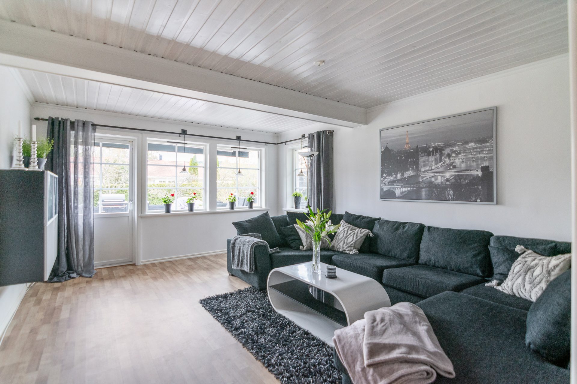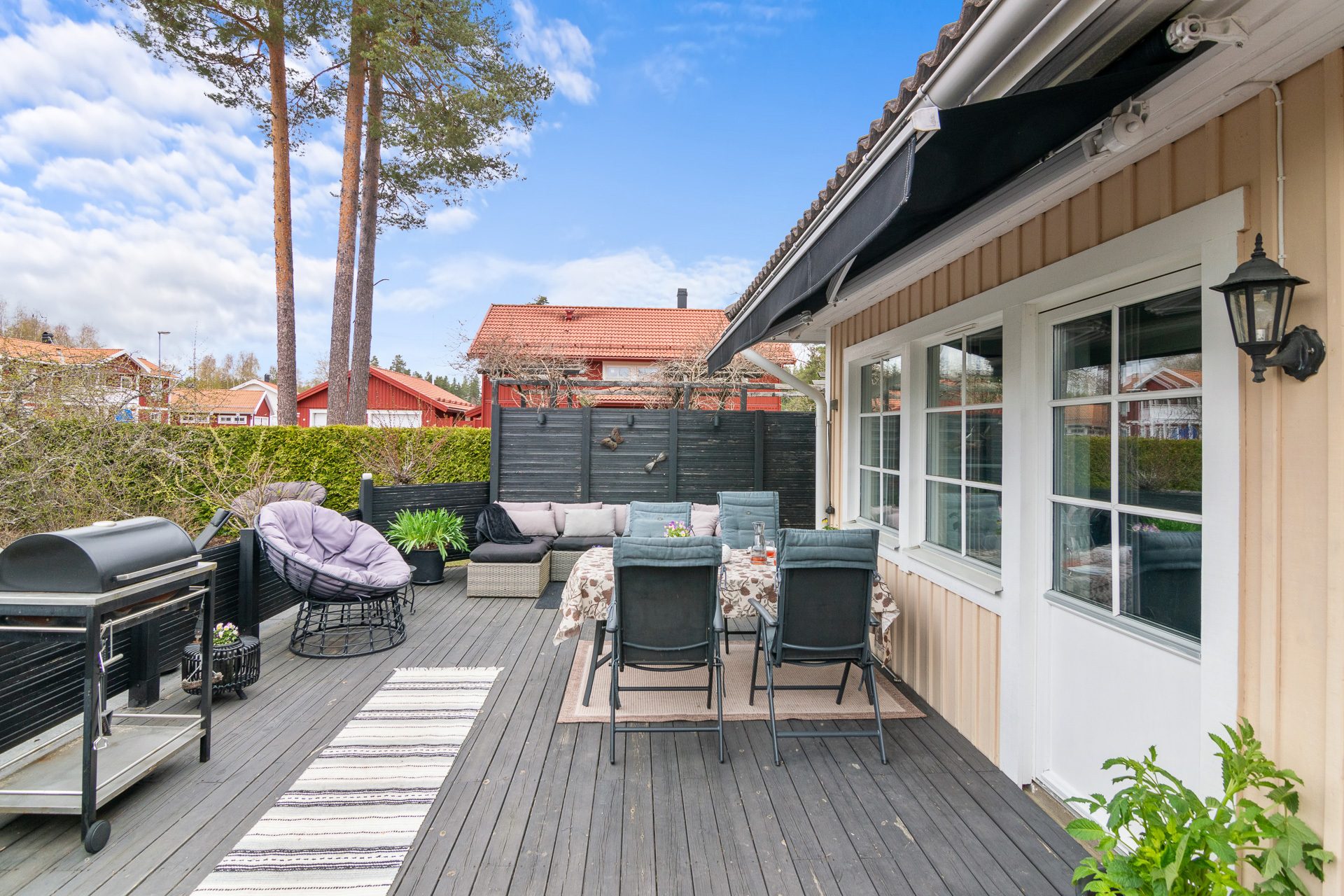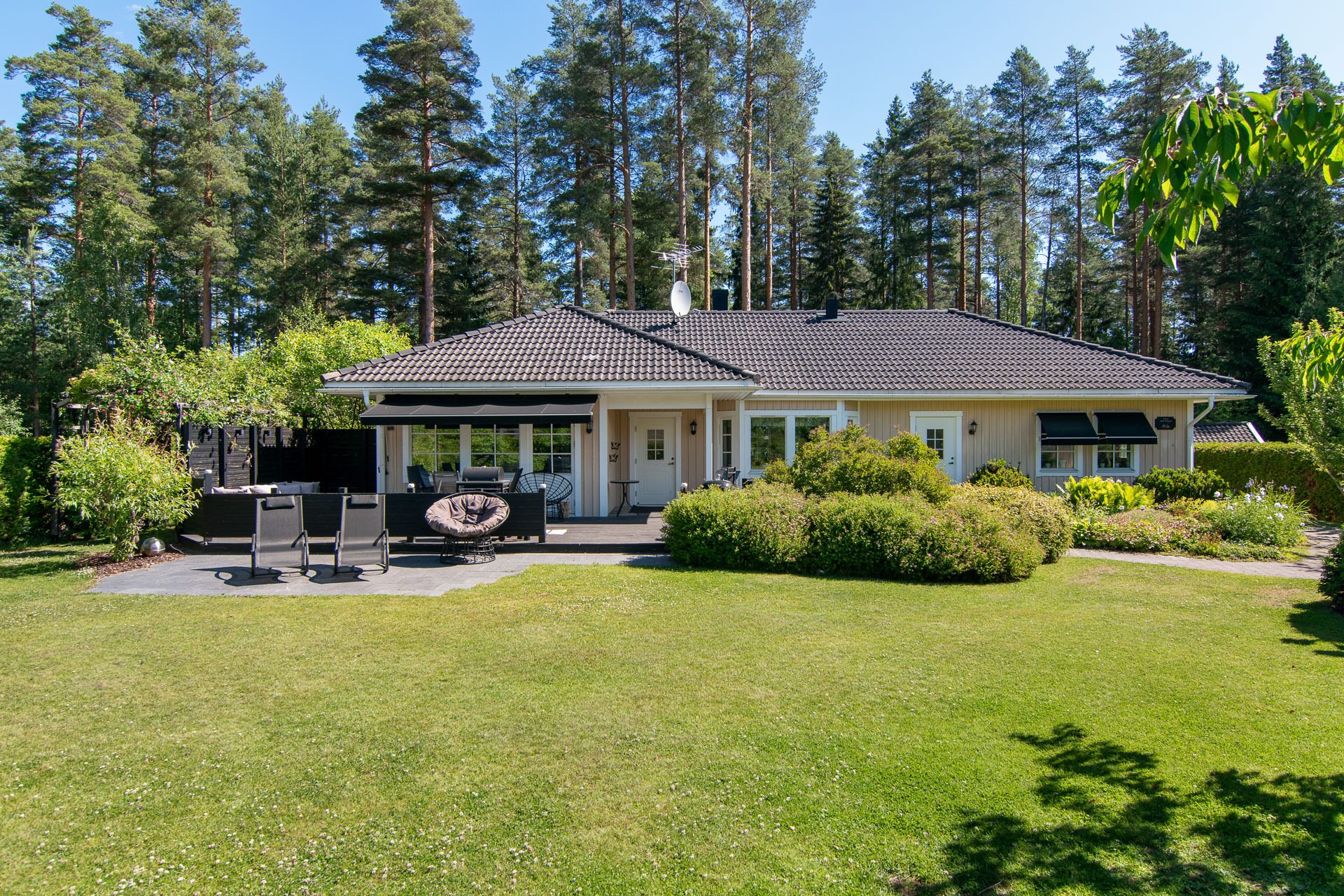 Här visas en trevlig enplans villa med attraktivt läge i uppväxta villakvarter. Här får du stora sällskapsdelar, genomgående fina ytskikt, generösa fönsterpartier med mycket ljusinsläpp, insynsskyddad trädgårdstomt som gränsar mot allmänning och ett separat garage. Huset har ett stort kök med matplats och öppen planlösning mot allrummet med burspråk. Vidare finns ett separat vardagsrum med fönsterpartier mot gården samt 4 sovrum varav ett av sovrummen med egen ingång och kan med fördel användas som hemmakontor. Två badrum varav ett med bastu samt separat tvättstuga. Stor altan på entrésidan som förlänger vardagsrummet inifrån och ut. Fin trädgårdstomt med plattsatta gångar, rabatter, fruktträd, flertal bärbuskar och en inramande häck med insynsskydd mot den lugna återvändsgatan.