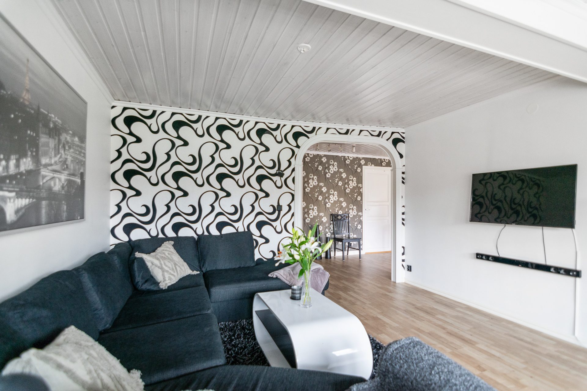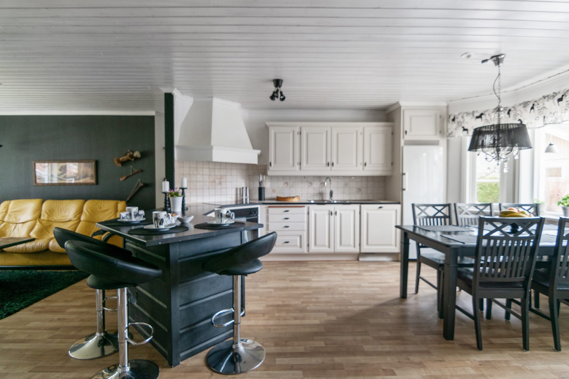 - Allmän beskrivning: Här visas ett välplanerat hus med genomgående fina ytskikt, ljusa färgsättningar, öppen planlösning mellan kök och allrum som är centrerat i mitten av huset. Köket är rymligt med burspråk, matplats för 8-10 personer, funktionell skåpinredning från Vansbro kök och fullt utrustat med kyl, frys, spishäll med ugn i underskåp, fläktkåpa samt diskmaskin. Mitt emot köket ligger allrummet med burspråk, spröjsade fönster mot baksidan av trädgården och öppen spis som pricken över i. Allrummet kan användas både som matrum eller tv-rum. Till vänster om köket ligger entrén med hatthylla för ytterkläder. I anslutning till hallen ligger två sovrum med bra storlek som vetter mot allmänningen. Badrum invid sovrummen med badkar, handfat med kommod samt wc. Generöst vardagsrum med fönster i två väderstreck och utgång till den trädäckade altanen och vidare ut mot trädgården. På den motsatta sidan av huset finner du det stora badrummet med dusch, bastu samt dubbelkommod från Valhall och inredning från Björbo bad. Tvättstuga med duschplats, tvättmaskin, torktumlare i pelare, arbetsbänk, fjärrvärmepump och utgång till trädgården. Vidare finns det två sovrum varav ett med egen klädkammare, garderobsvägg och även här en egen utgång till trädgården. Det andra sovrummet kan med fördel användas som kontor då det har en egen ingång från gaveln av huset. Vidbyggt garage med förråd samt växthus på tomten. Närhet till Norra Backas handelsområde och Kupolen med butiker av alla de slag. Trevliga strövområden och Tjärnaberget med dess fina natur alldeles intill.