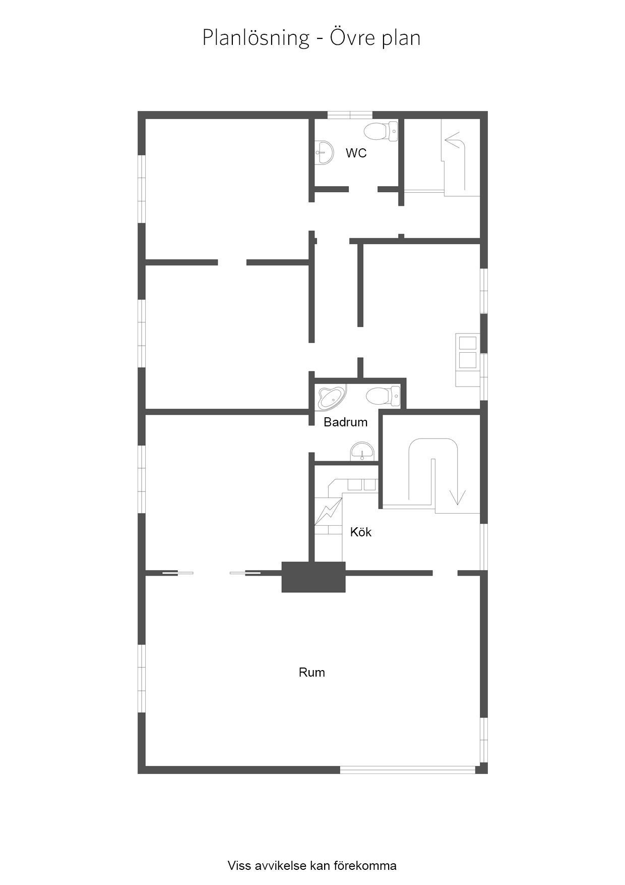 Lägenhet 4:B på övervåningen med balkong i vinkel. Trappa från hallen upp till köket med köks-ö, stort vardagsrum med utgång tillbalkong och öppen spis, sovrum med plats för dubbelsäng och helkaklat badrum.