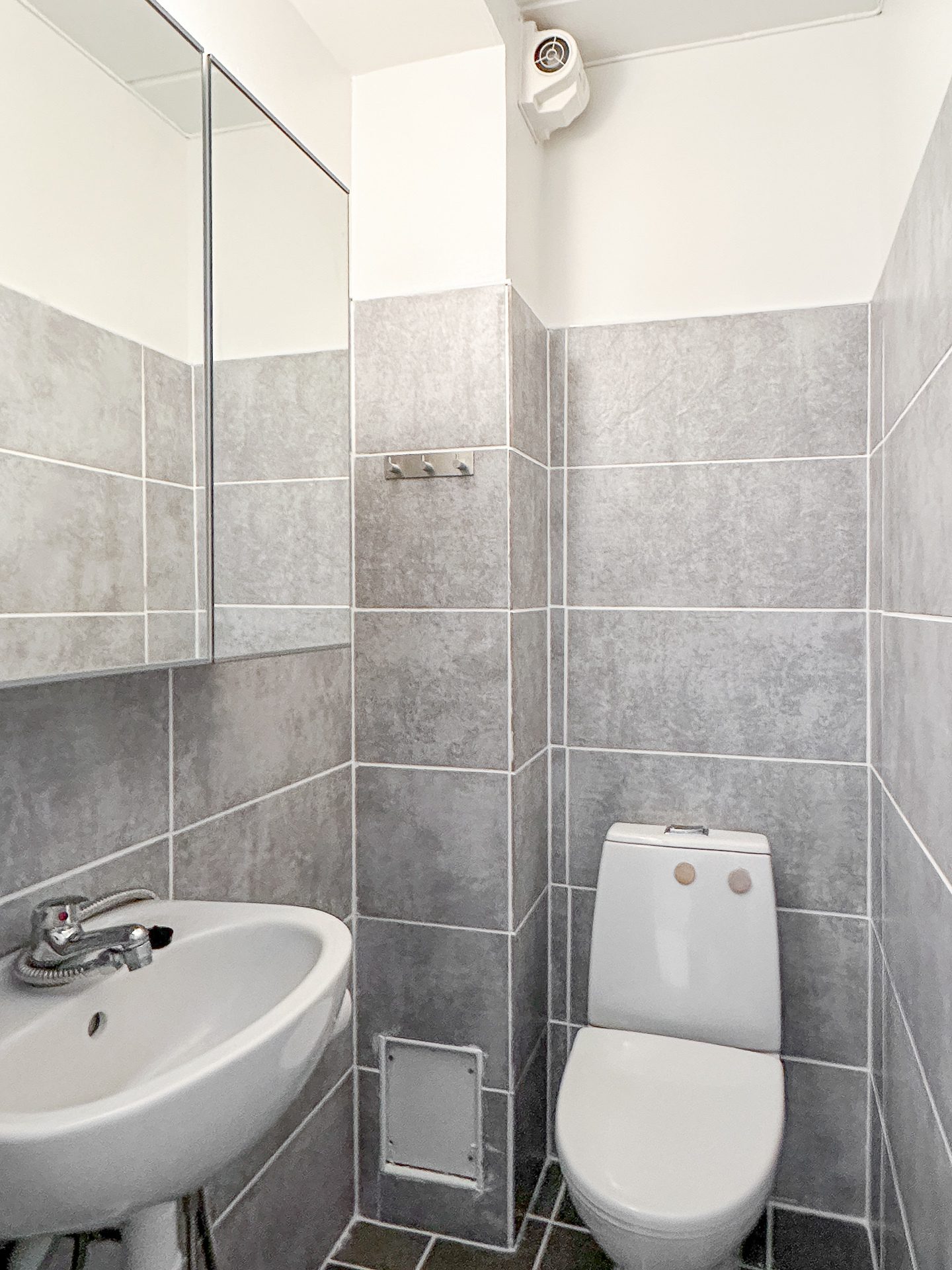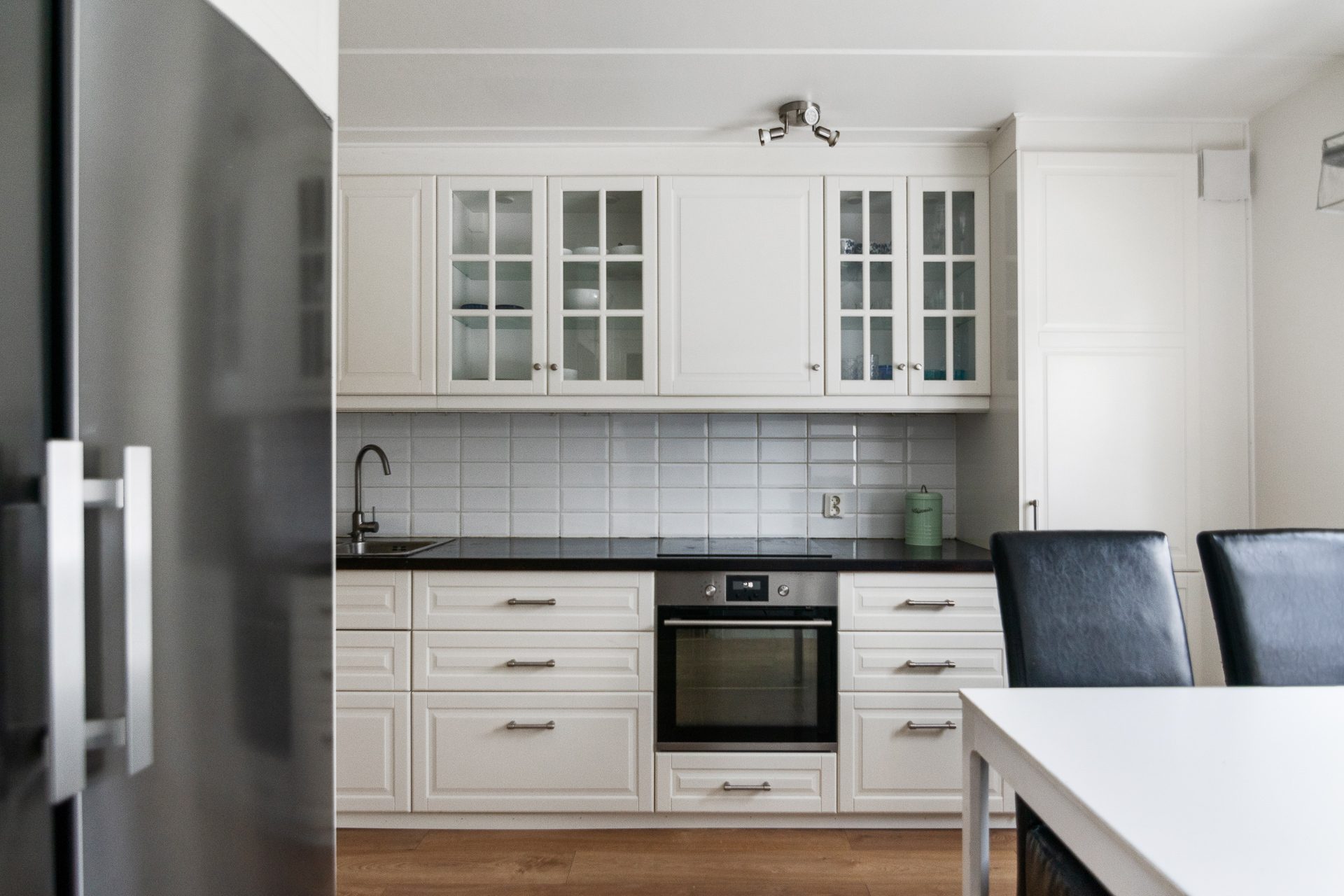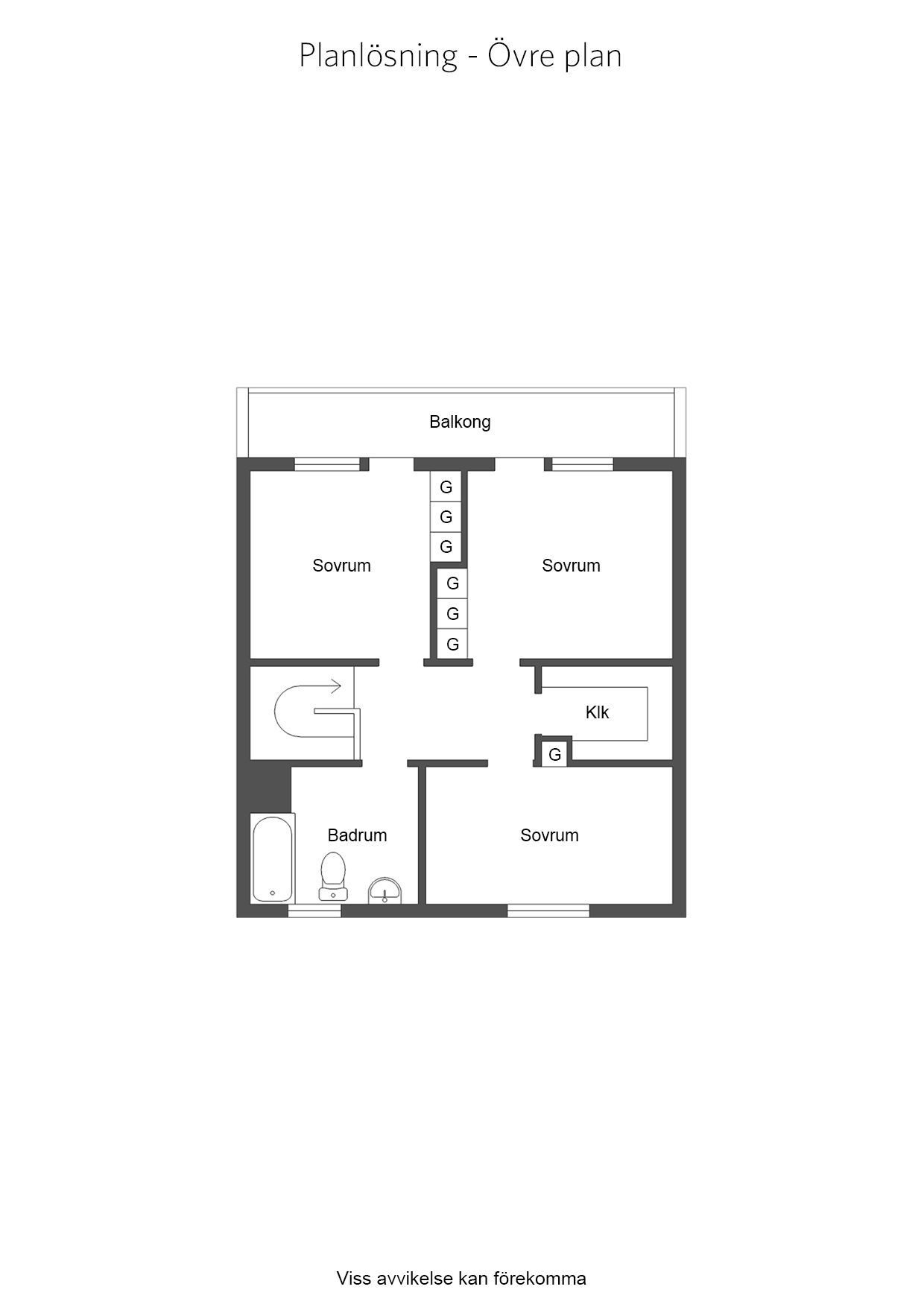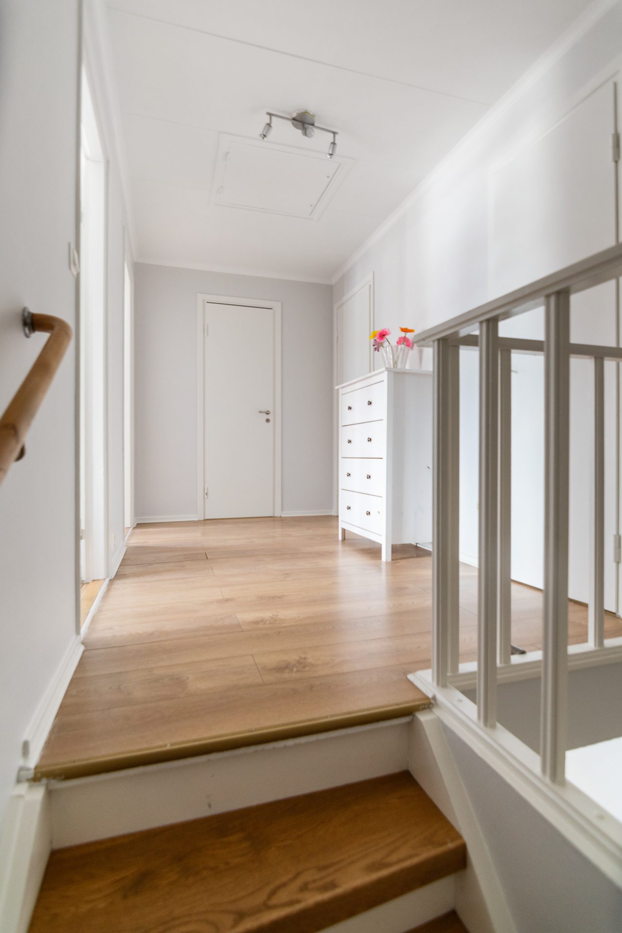 - Allmän beskrivning: Välkomnande hall med plats för avhängning. I hallen finns en wc samt tvättstuga. Hallen öppnar upp mot köket och vardagsrummet. Köket är renoverat och fullt utrustat med spishäll, ugn, kyl, frys samt diskmaskin. Köket har matplats för 6-8 personer och fönster mot entrésidan. Vardagsrummet är generöst med plats för både soffgrupp och matplats. Från vardagsrummet är det vidare utgång till den stora altanen mot trädgårdssidan. Trappan från hallen leder upp till övervåningen. Här finns tre sovrum som samtliga håller bra storlek. Två av sovrummen har platsbyggda garderober och utgång till den takade balkongen mot trädgårdssidan. Vidare finns ett badrum som är renoverat med kakel och klinker. Badrummet är utrustat med wc, tvättställ och dusch.