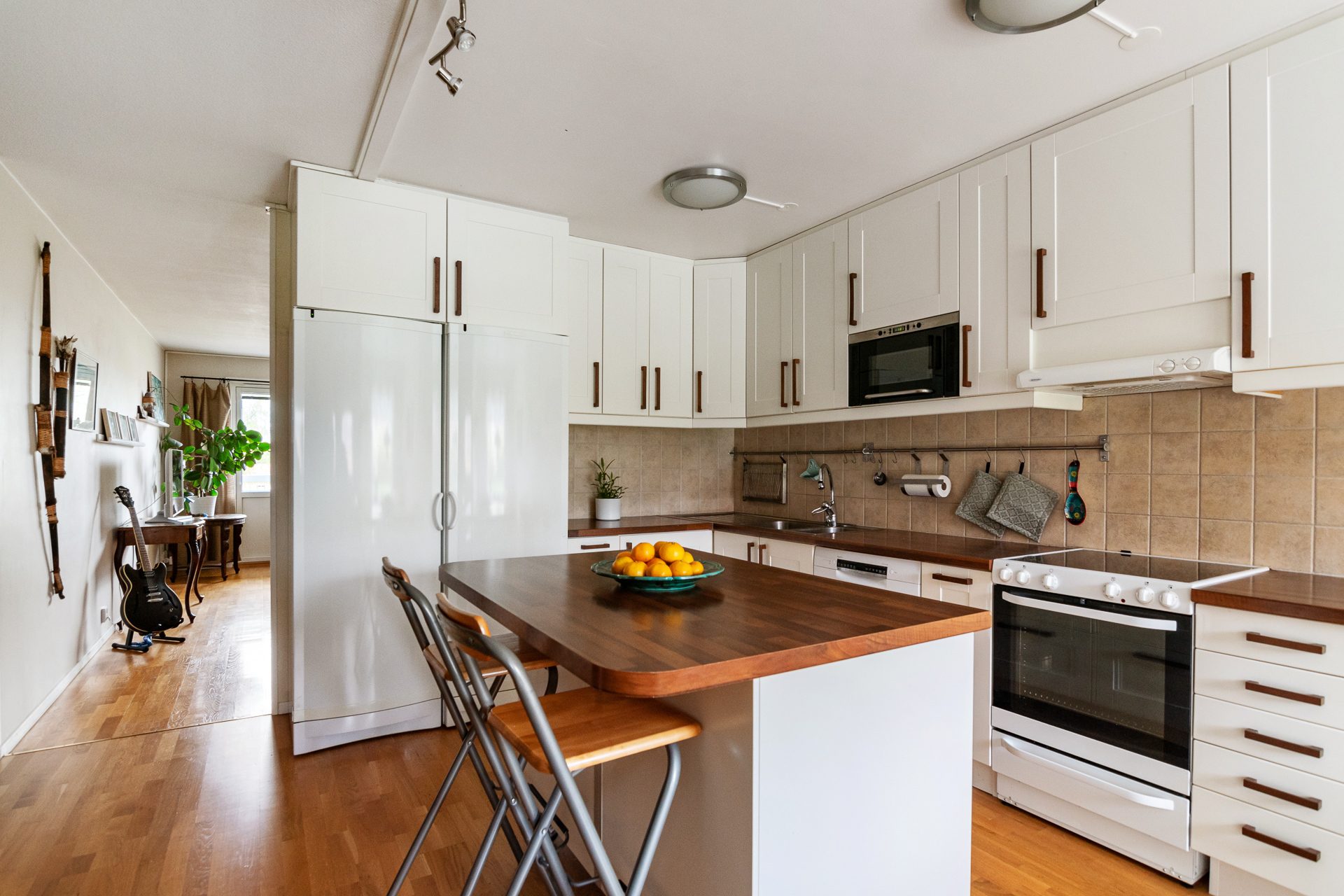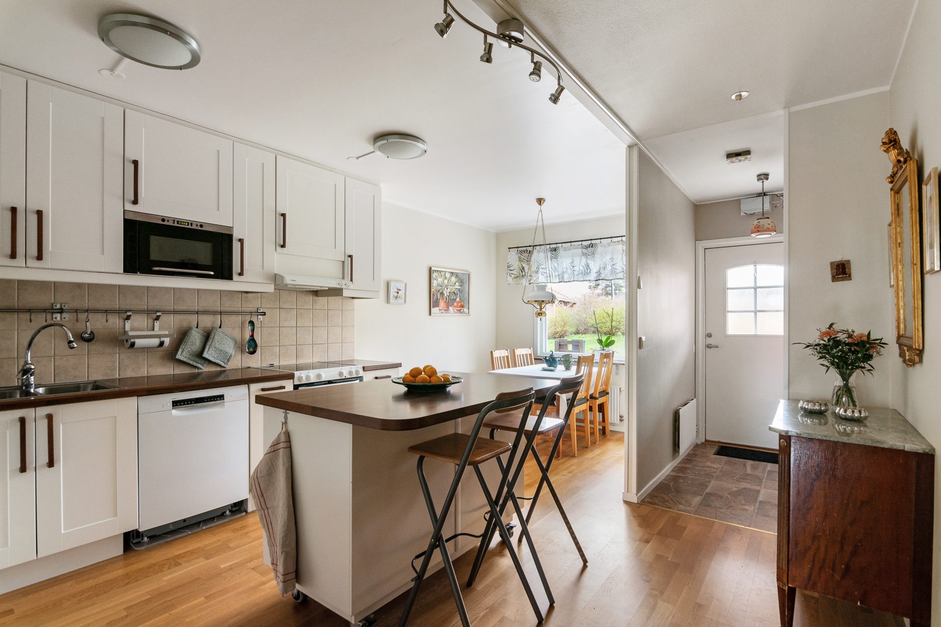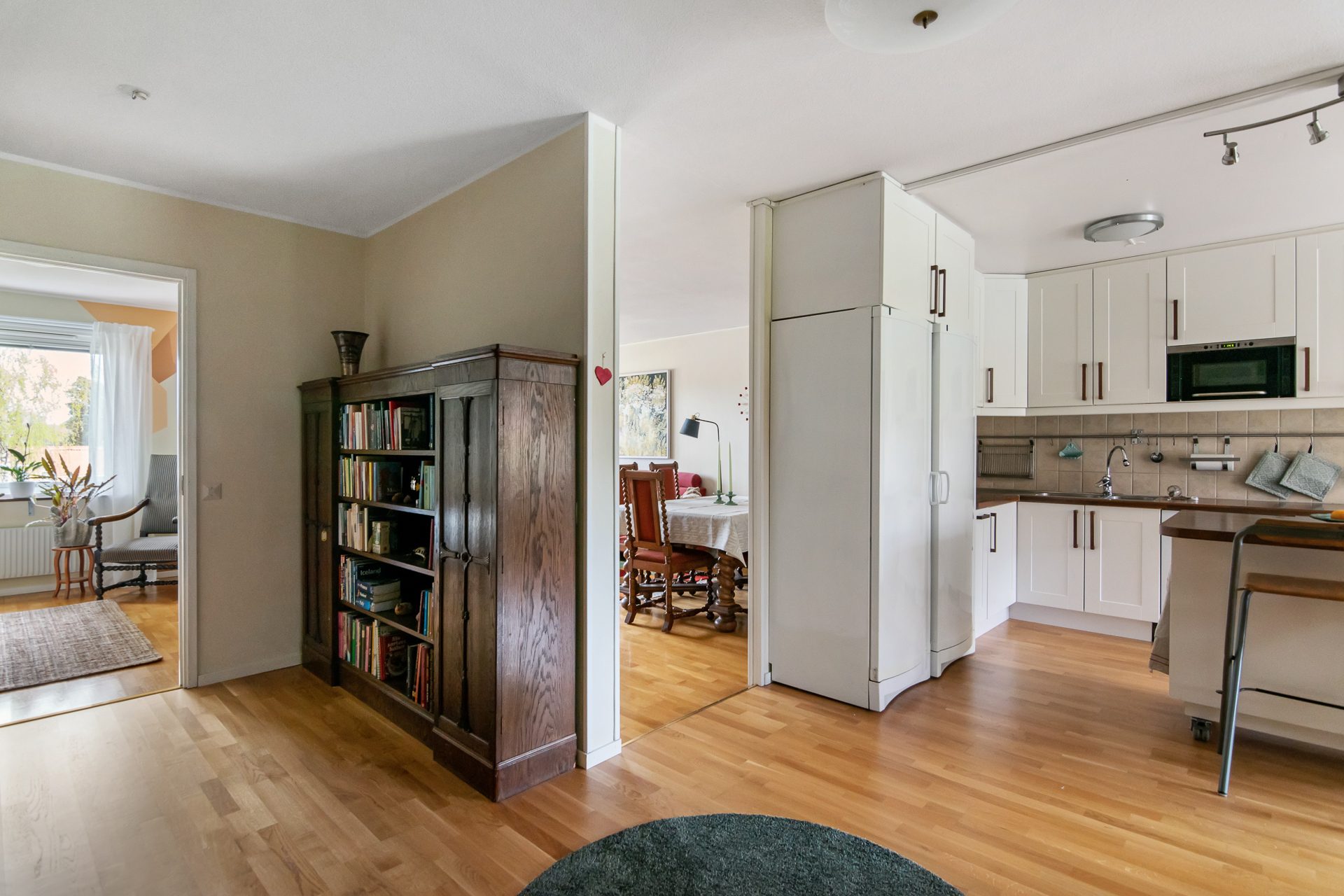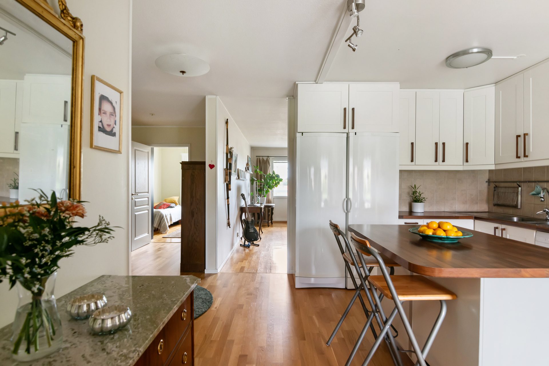 I attraktiva Främby ligger denna trevliga sutteränglägenhet i två våningsplan med stora sociala ytor. Bostaden presenterar ett stort kök med köks-ö, vardagsrum med utsikt mot sjön Runn, tre sovrum som håller bra storlek och badrum på respektive våningsplan. Uteplatser på både entrésidan samt trädgårdssidan vilket ger en känsla av radhuskaraktär. Strövområden längs med strandpromenaden och behagligt cykel- och promenadavstånd in till stadskärnan.