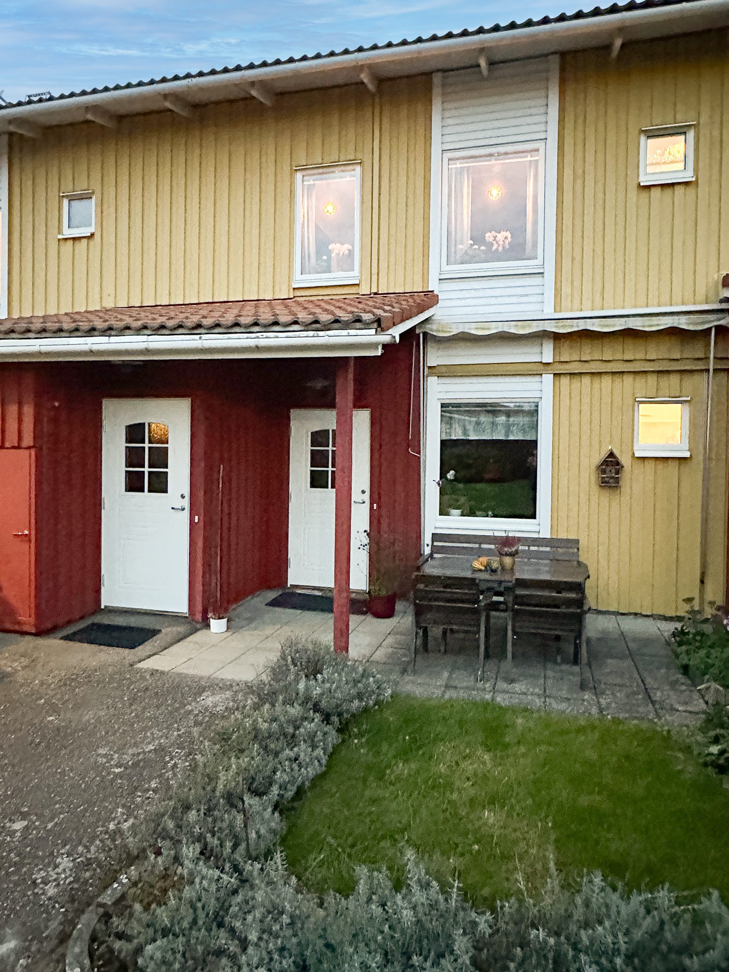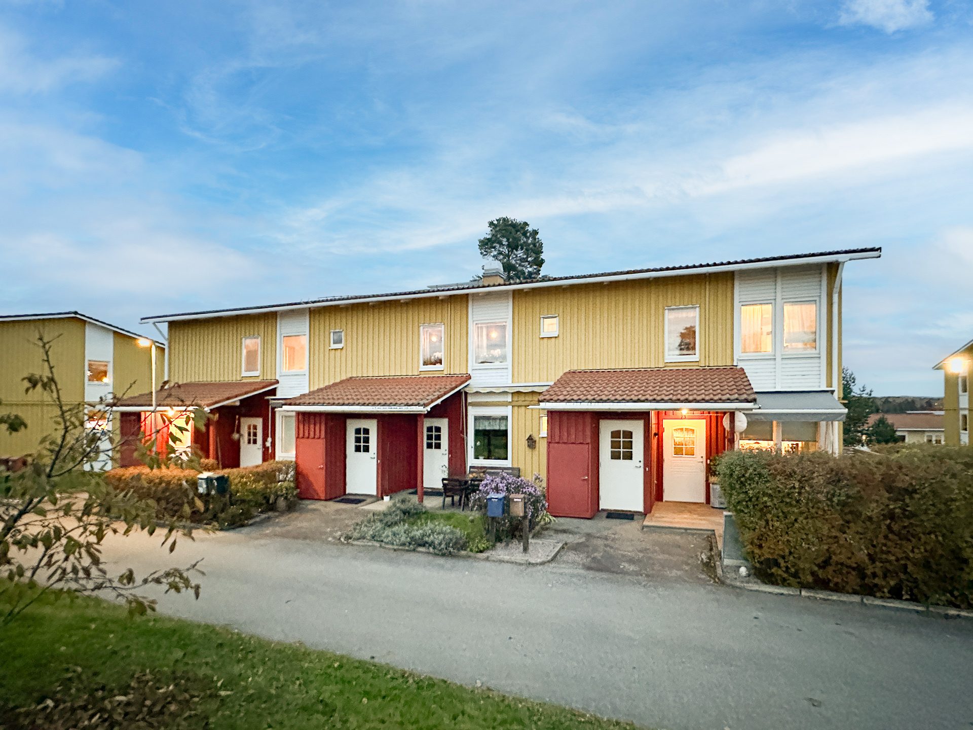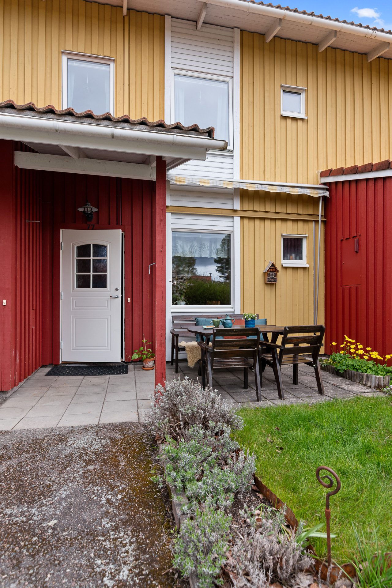 Här visas en trevlig lägenhet i två våningsplan med sutterängvåning och radhuskänsla i populära Främby. Naturskönt läge med sjöutsikt och uteplats i skyddat läge mot trädgårdssidan.