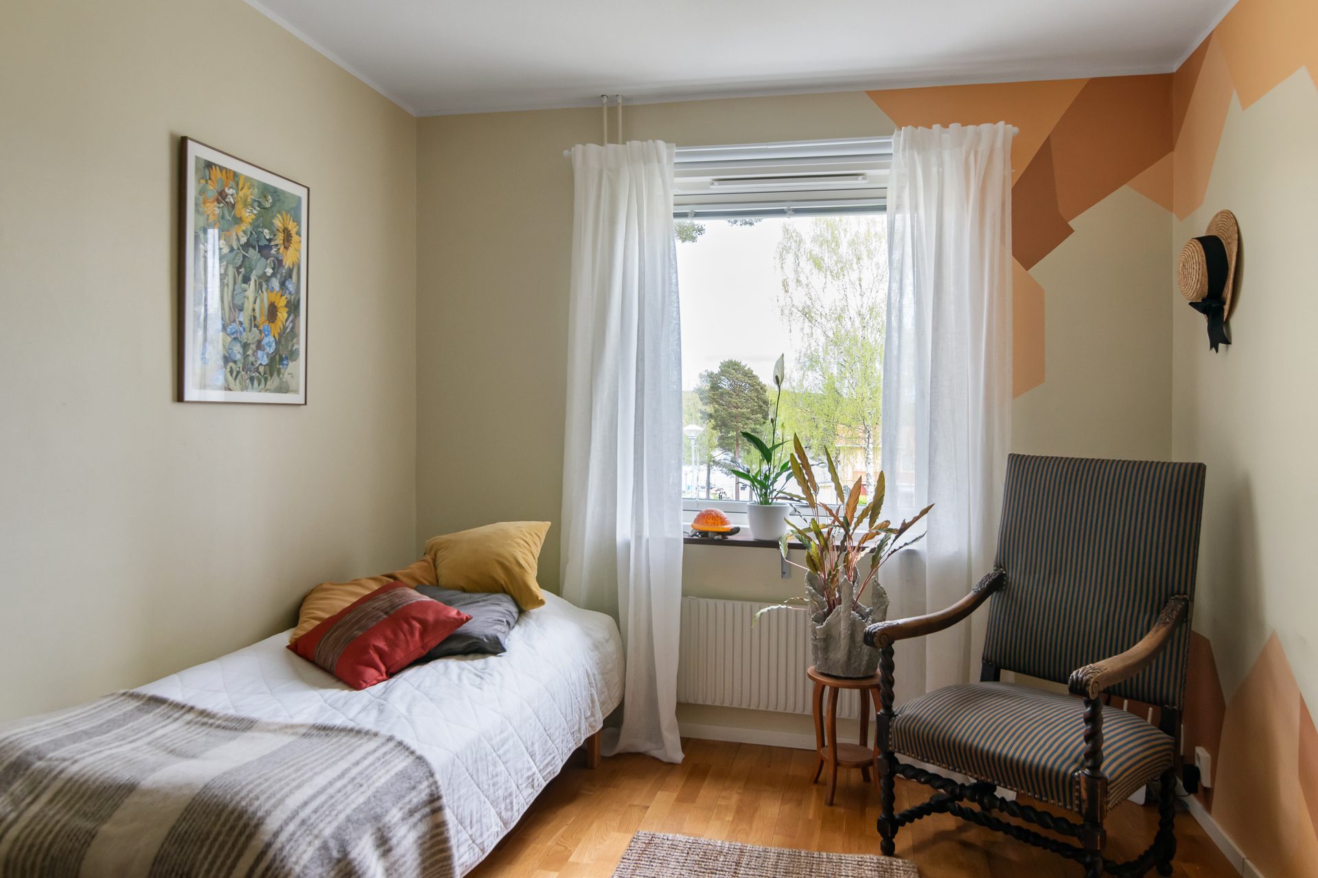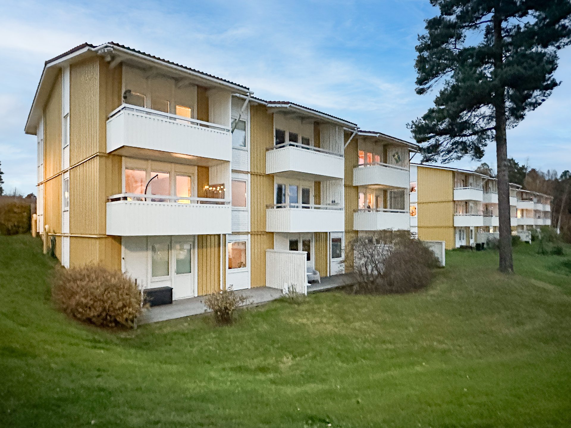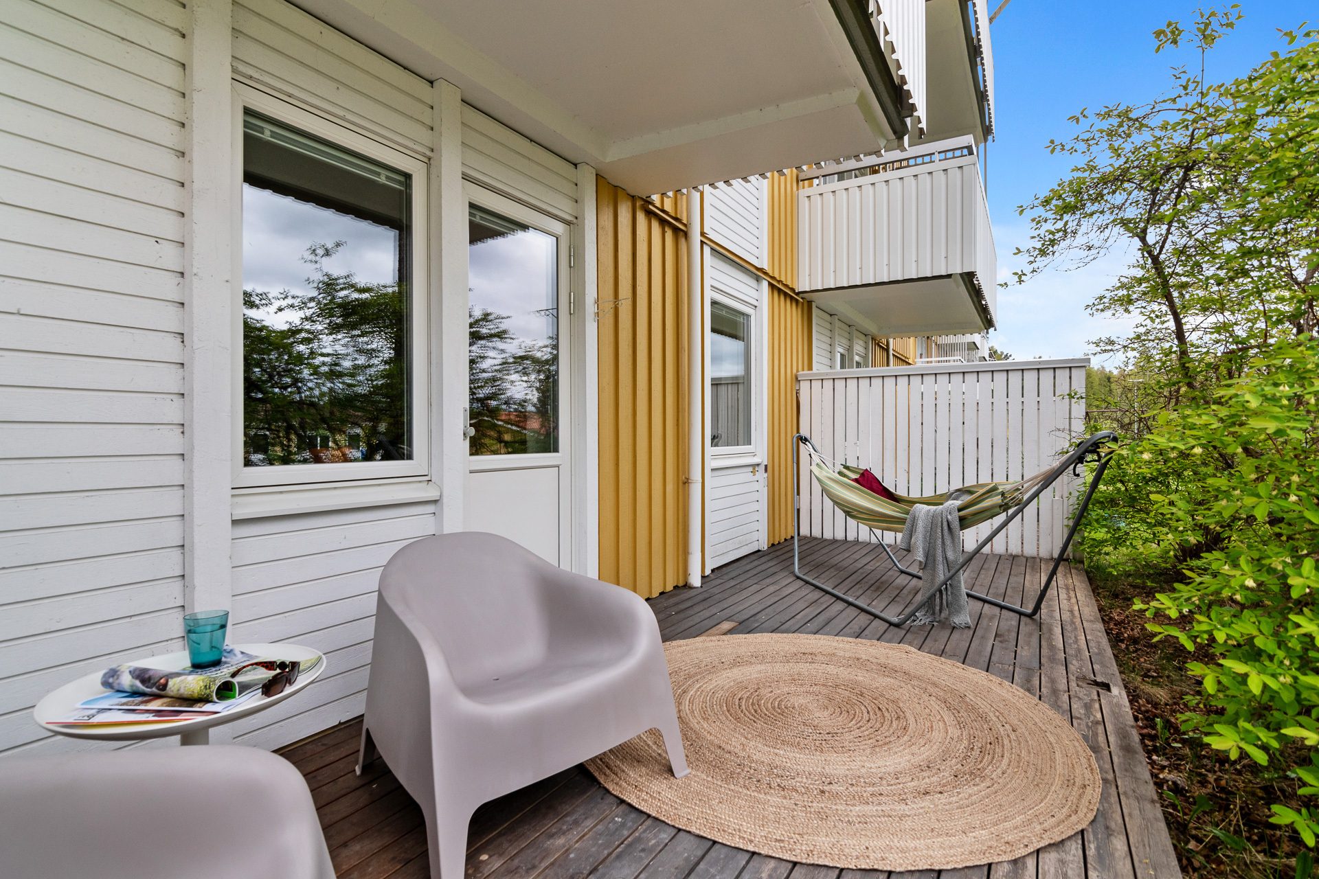 Här visas en trevlig lägenhet i två våningsplan med sutterängvåning och radhuskänsla i populära Främby. Naturskönt läge med sjöutsikt och uteplats i skyddat läge mot trädgårdssidan.