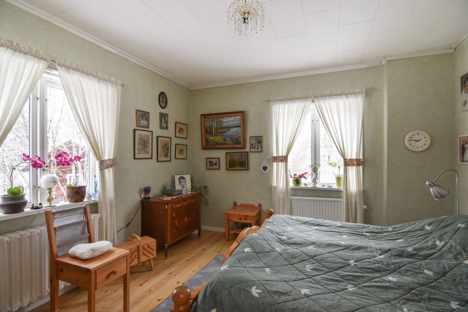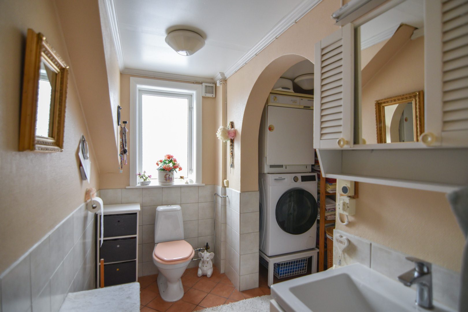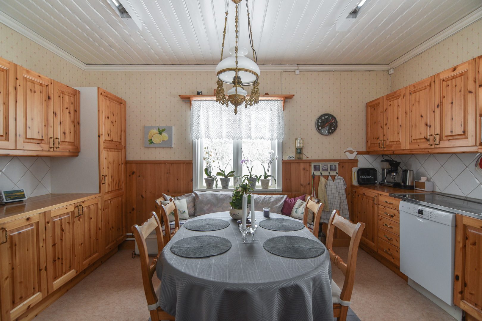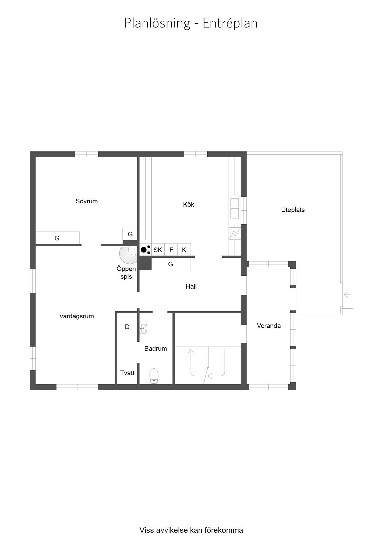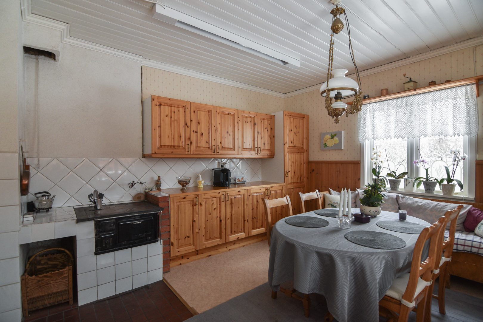 - Allmän beskrivning: Välkomnande entré med inglasad veranda. Vidare kommer du in till en mindre hall med avhängningsmöjlighet och trappa upp till det övre planet trappa och ner till källaren. Direkt till höger ligger ett stort lantligt kök som är fullt utrustat och har bra arbetsytor. I hallen finns entréplanets badrum som innehåller förutom wc och handfat även tvättmaskin och torktumlare i pelare samt dusch. Vidare in från hallen når du vardagsrummet som är ljust och öppet med fönster i två väderstreck samt en öppen spis. Från vardagsrummet har du ingång till ett stort sovrum med garderober.