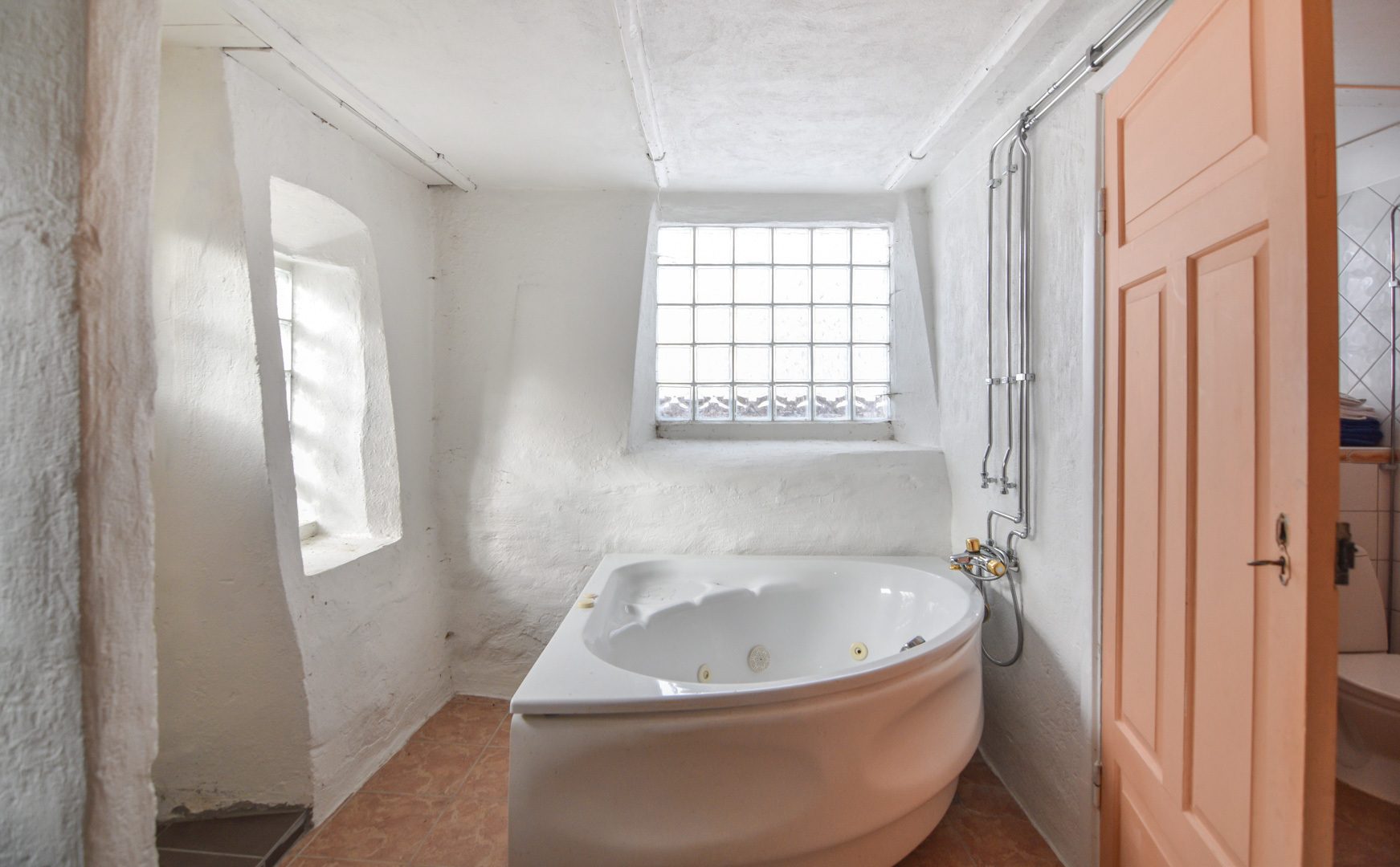 Från hallen på entréplan finns även trappan ner till källaren. Här nere finns en relaxavdelning med bubbelbadkar, bastu och dusch samt toalett, tvättstuga och jordkällare. Till relaxavdelningen är finns det även en utvändig ingång.