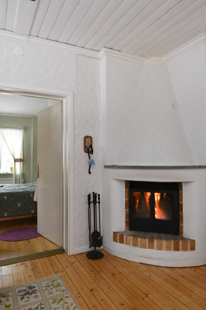 - Uppvärmning: Jordvärme, vedspis och öppen spis med insats
