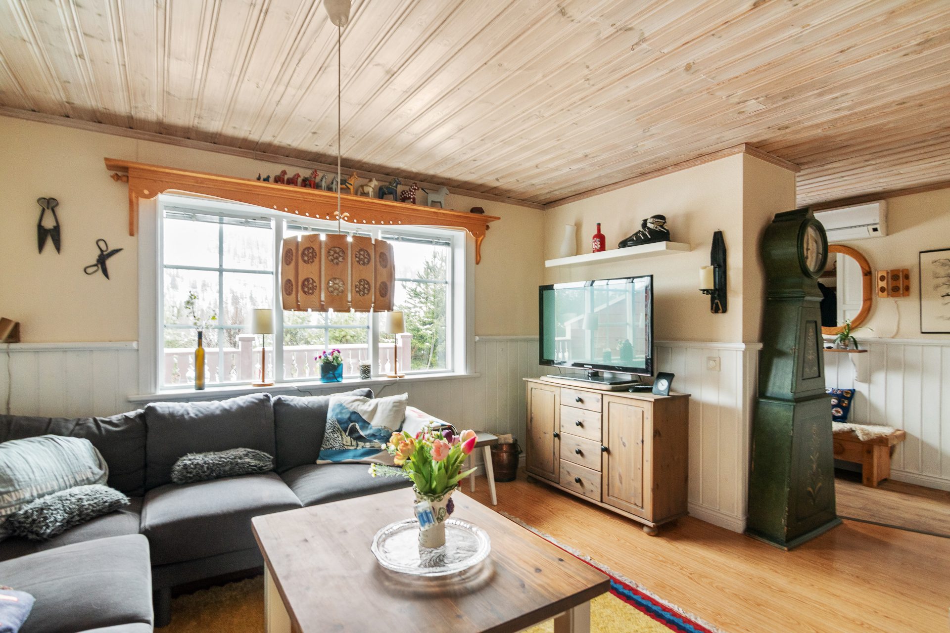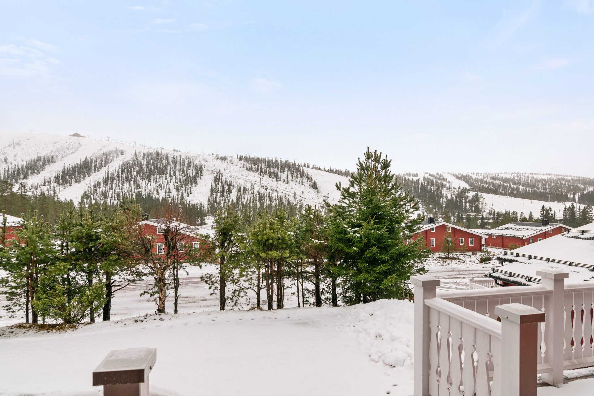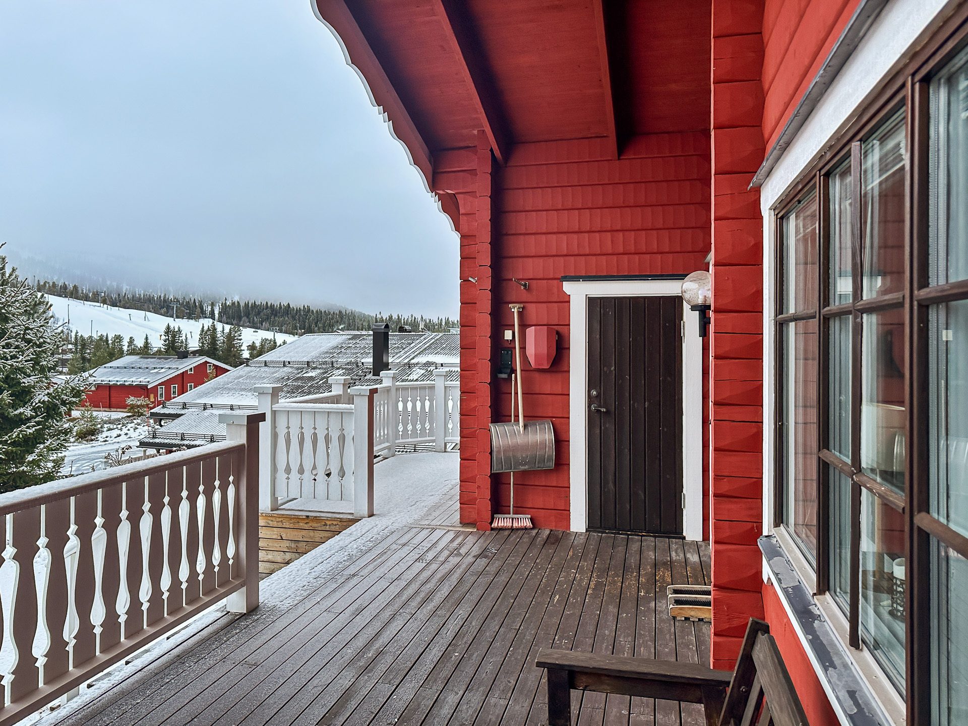 Vidbyggt förråd till vänster om entrén samt elbilsladdare och parkeringsplats vid ytterdörren. Generös och möblerbar altan med utsikt mot fjället.