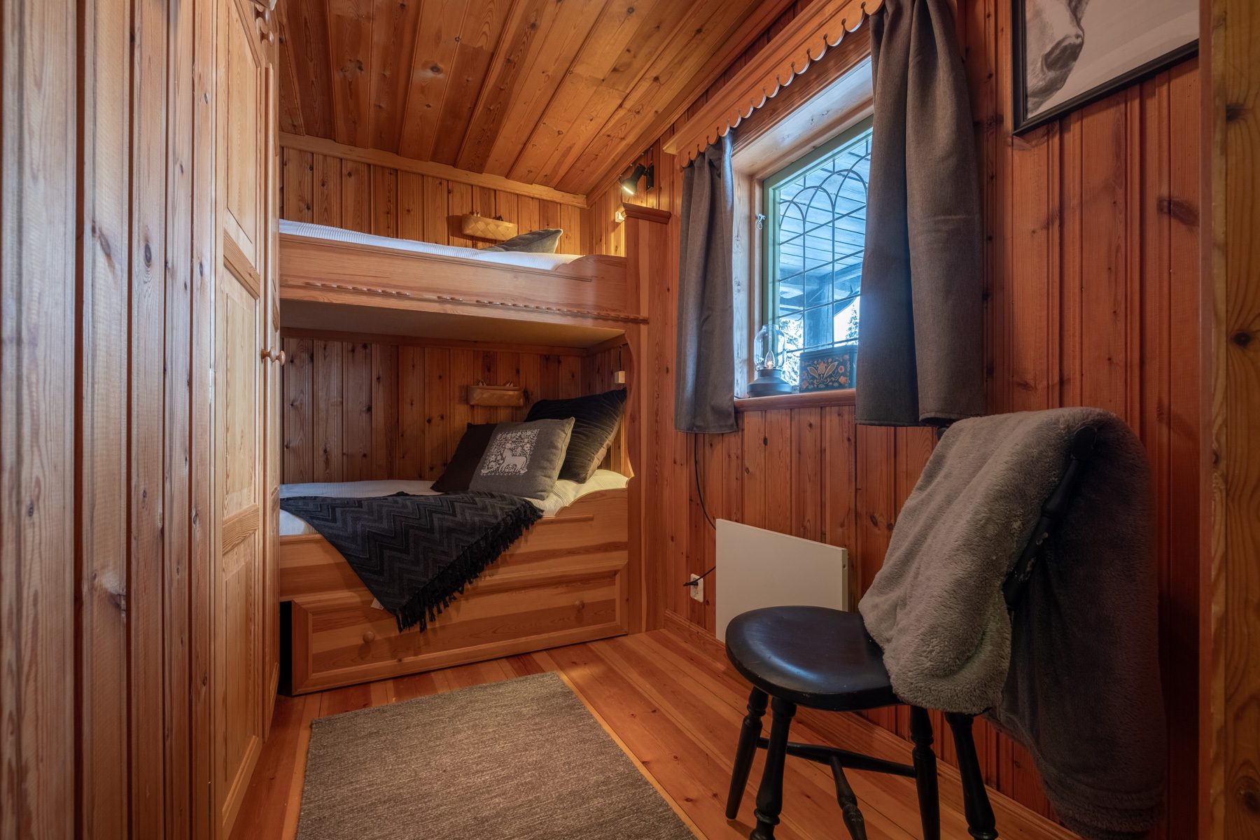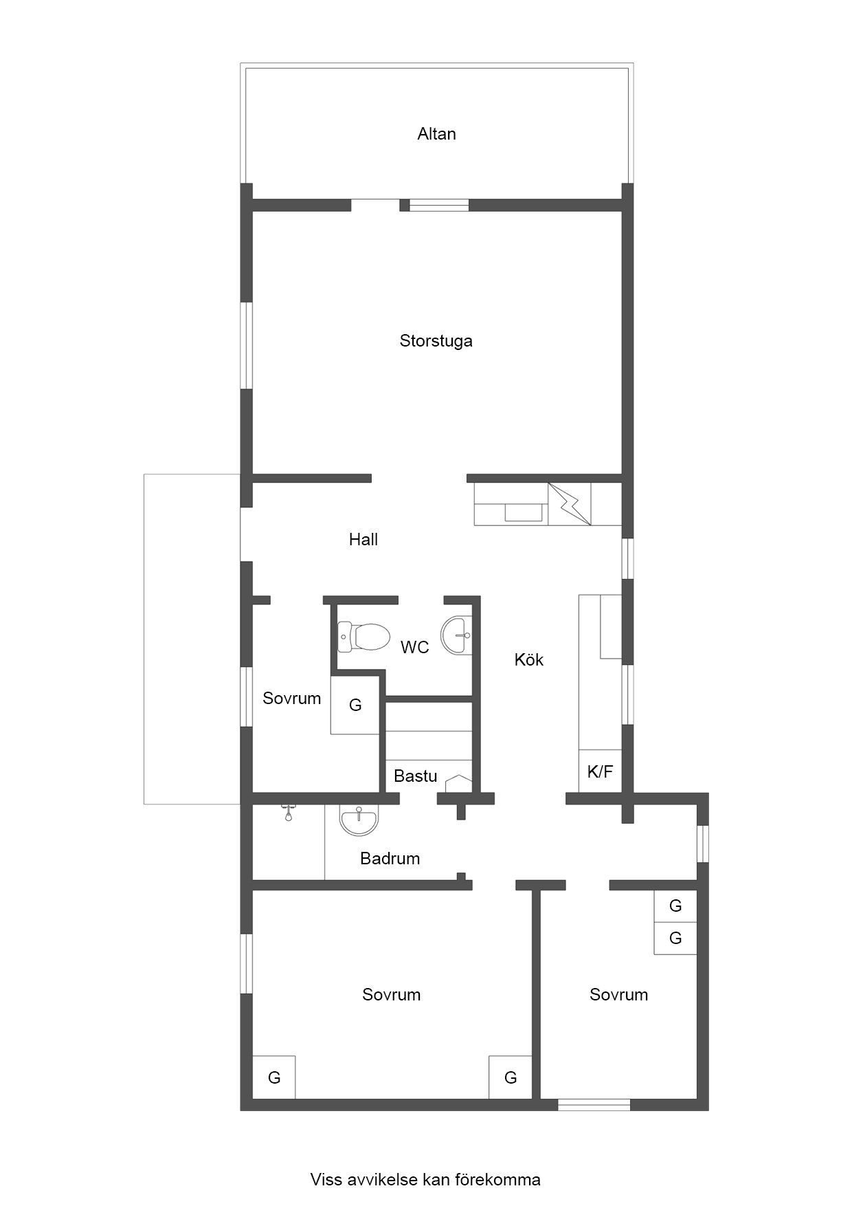 - Allmän beskrivning: Välkomnande hall med avhängning samt wc. Med dörr inifrån wc finns ett utrymme med tvättmaskin och torkmöjligheter. Sovrum vid hallen med våningssäng, garderober och fönster mot entrésidan. Vardagsrum i anslutning till hallen med fönster i två väderstreck, utgång till altanen samt vedeldad kamin. Vardagsrummet med de generösa ytorna kombineras fördelaktigt som både matrum och vardagsrum. Vidare in i huset har vi ett funktionellt och rejält kök med full maskinell utrustning, bra arbetsytor och förvaringsmöjligheter. I anslutning till köket finns ytterligare två sovrum med totalt 6 bäddar. Masterbedroom har dubbelsäng samt våningssäng och fönster mot entrésidan. Det mindre sovrummet har dubbelsäng och fönster mot gaveln. Mellan sovrummen och köket finns badrummet med dusch, tvättställ och bastu.