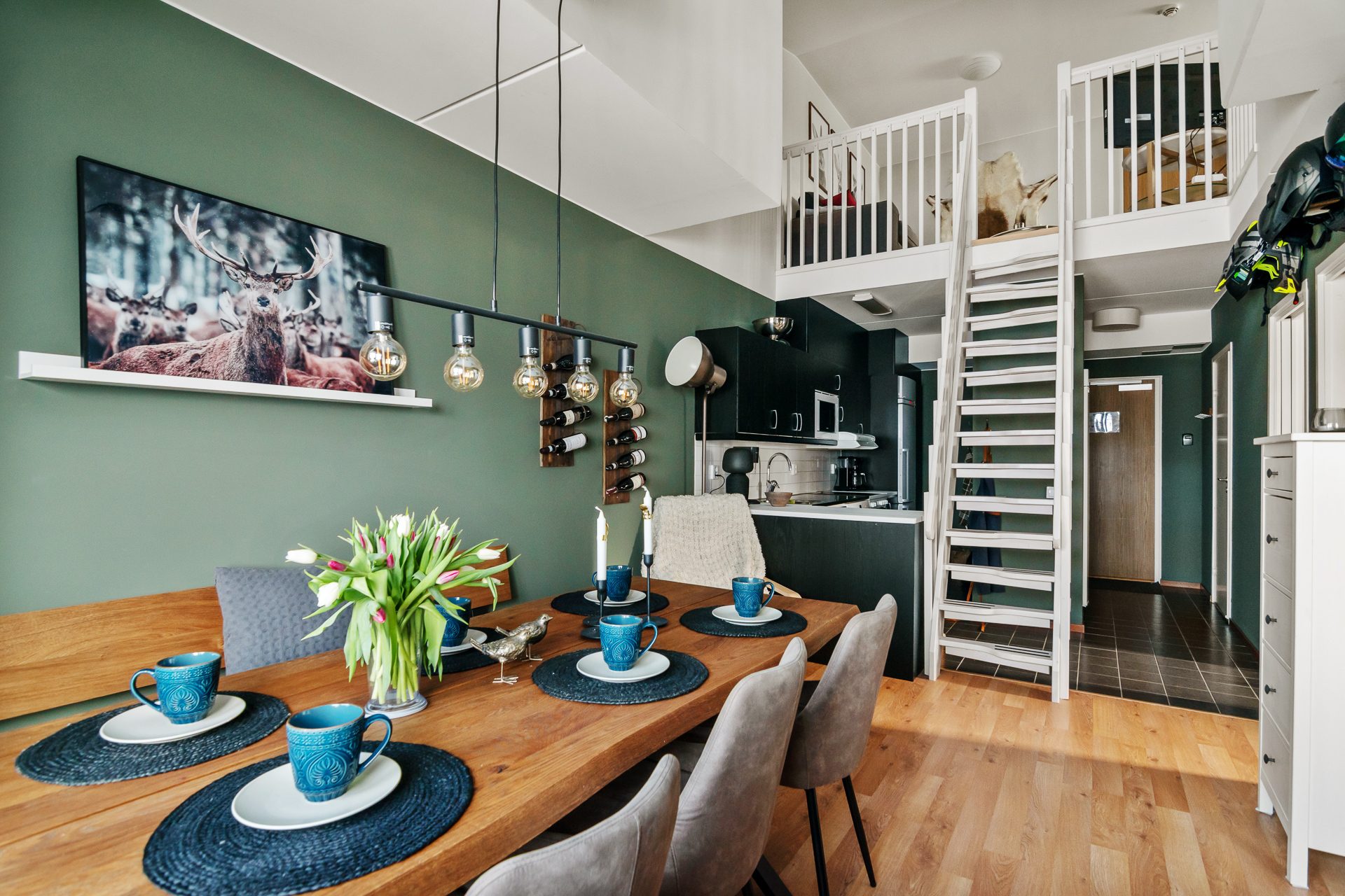 Med ett attraktivt läge uppe på Högfjället, granne med längdspåren och liftarna ligger detta trevliga fjällboende. Denna gavellägenhet har fönster i två väderstreck med mycket ljusinsläpp och en härlig karaktär med sin väl tilltagna takhöjd, ljusa färgsättningar samt loftvåningen som pricken över "I". Materialvalen har det inte sparats på och lägenheten upplevs som något utöver det vanliga. Möblerbar balkong i anslutning till vardagsrummet med utsikt mot Östra kalven och Storfjället. Från lägenheten är det promenadavstånd till lift, längdspår och mataffär. Praktiskt skidförråd i källarvåningen.