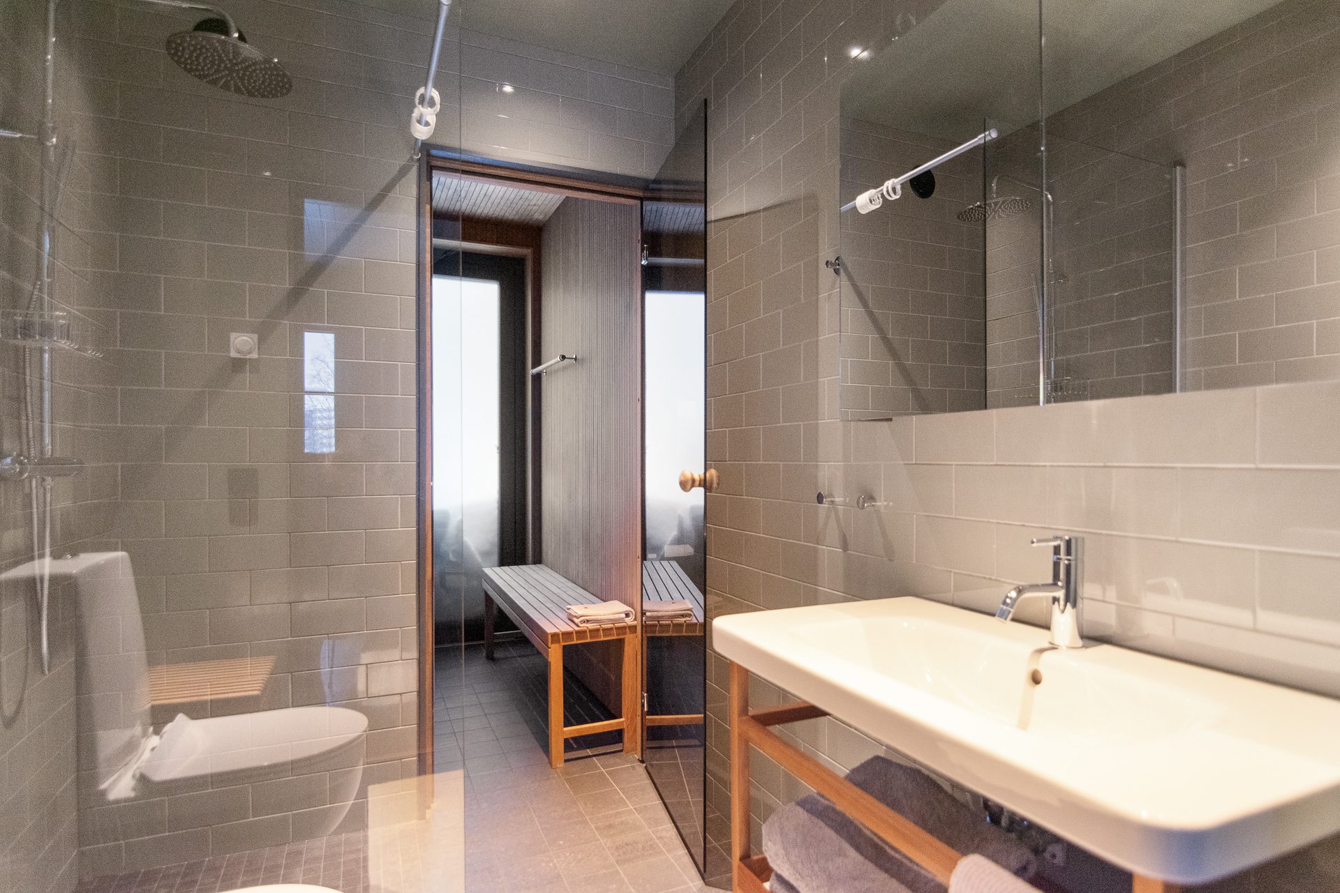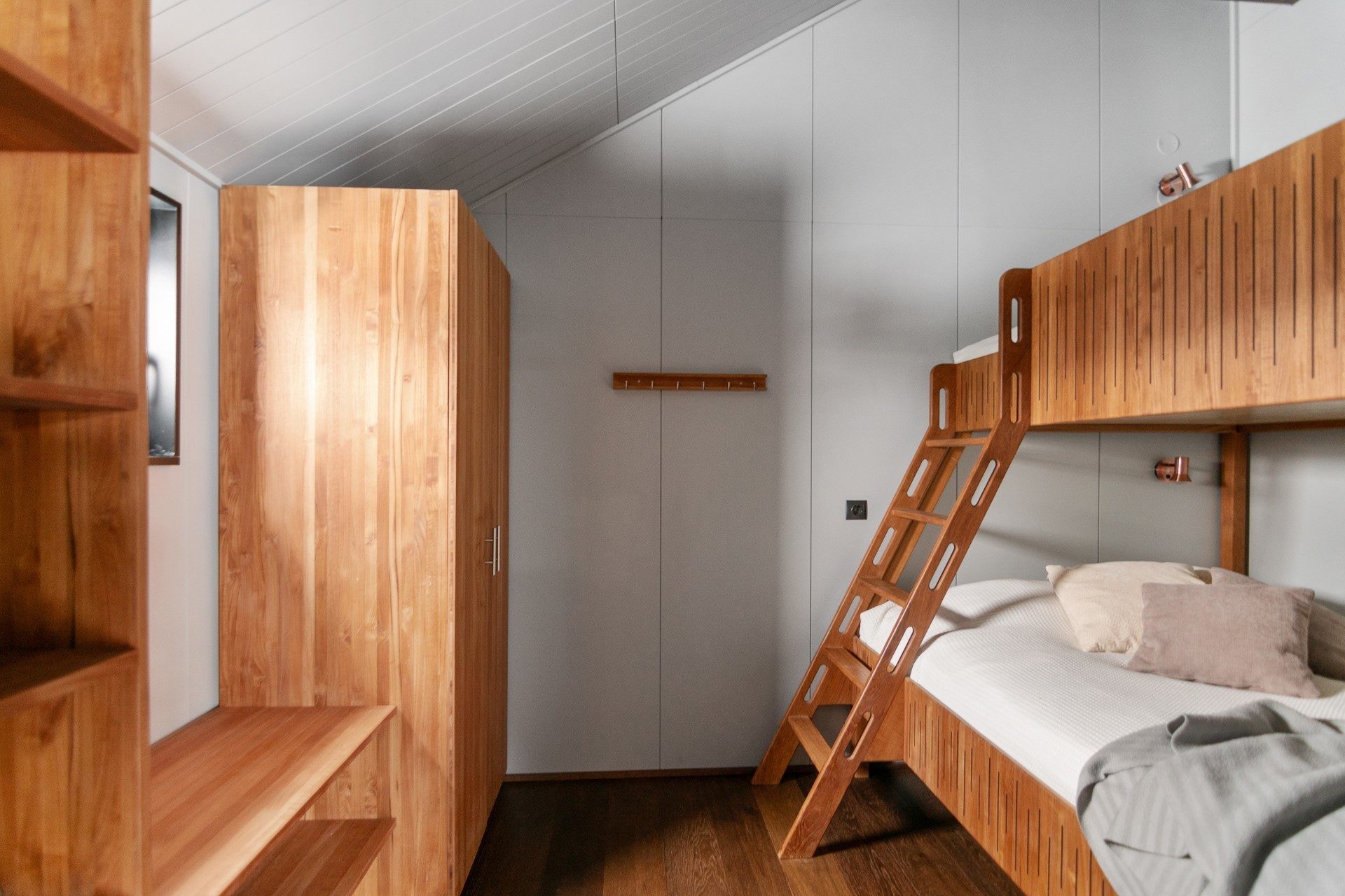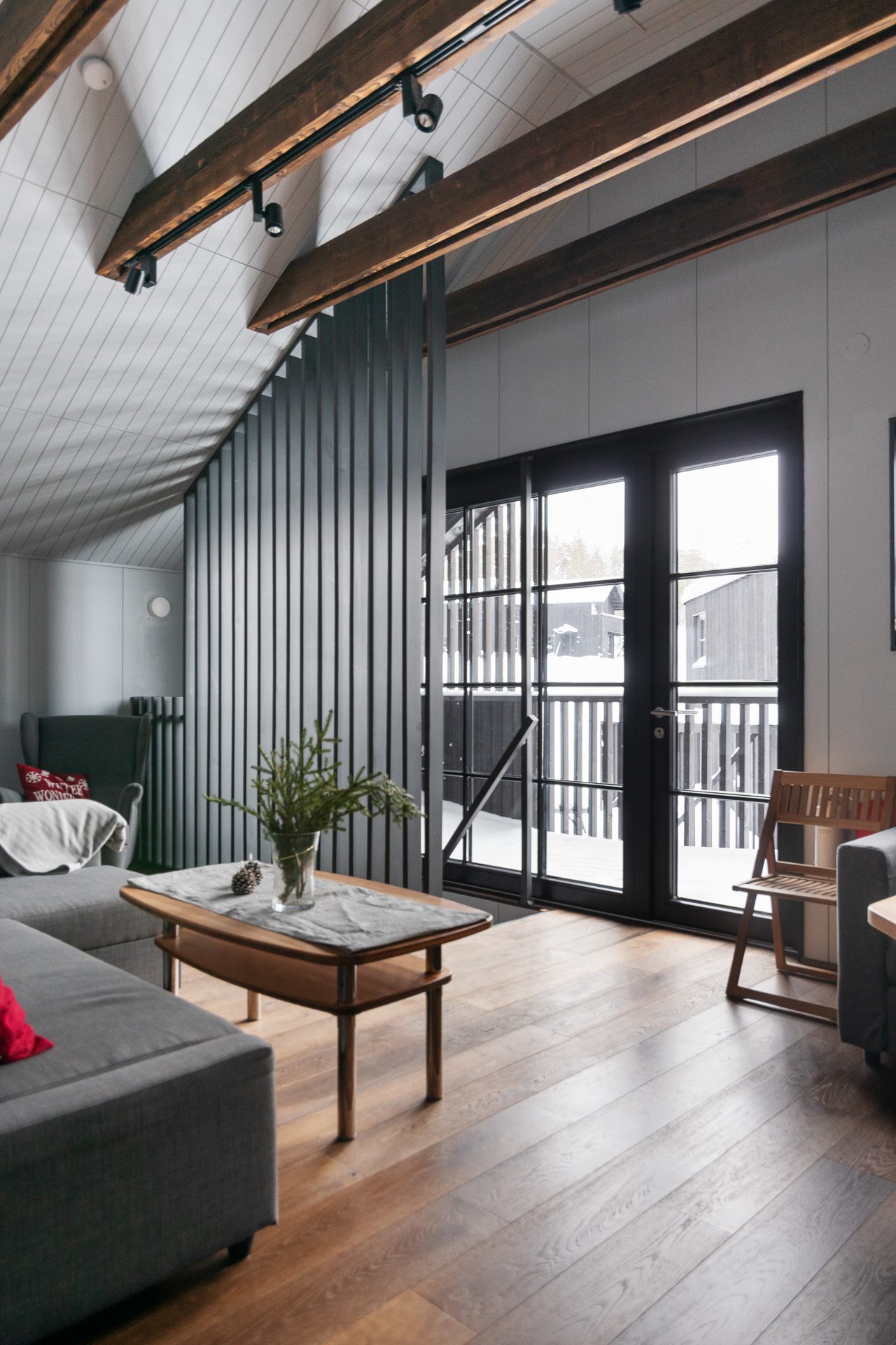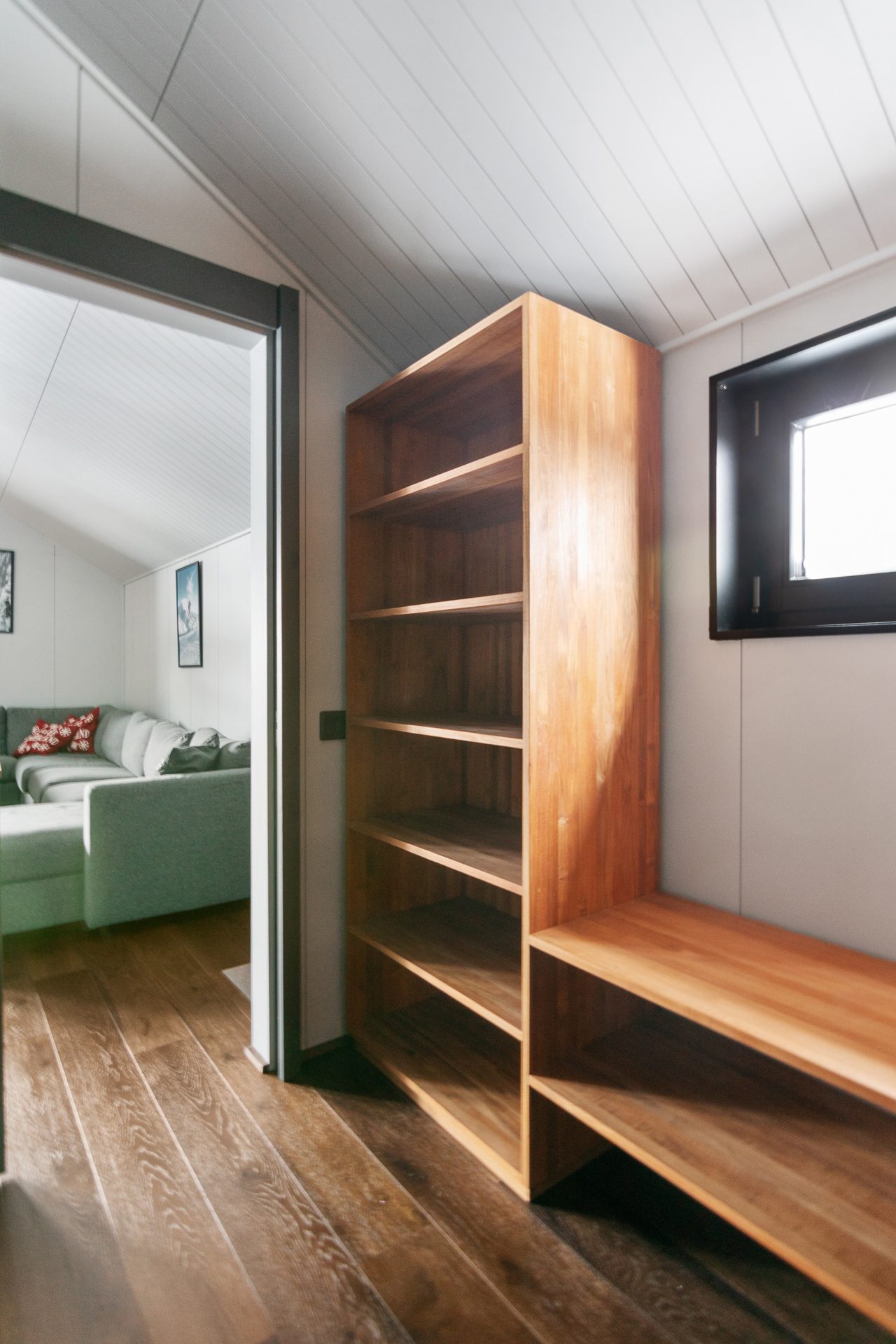 På entréplan finner du även två ombonade sovrum, båda inredda med våningssängar klädda med panel i dova färger. Här hittar du även rymliga garderober som ger bra förvaring samt ett förråd/teknikrum med tvättmaskin vilket gör din vistelse här bekväm och trivsam. Den nybyggda hallen med golvvärme skapar en fin rymd och det blir enkelt att få av sig pjäxorna efter en dag i backarna. Utvändigt intill entrén finns ett skidförråd samt en altan i vinkel.