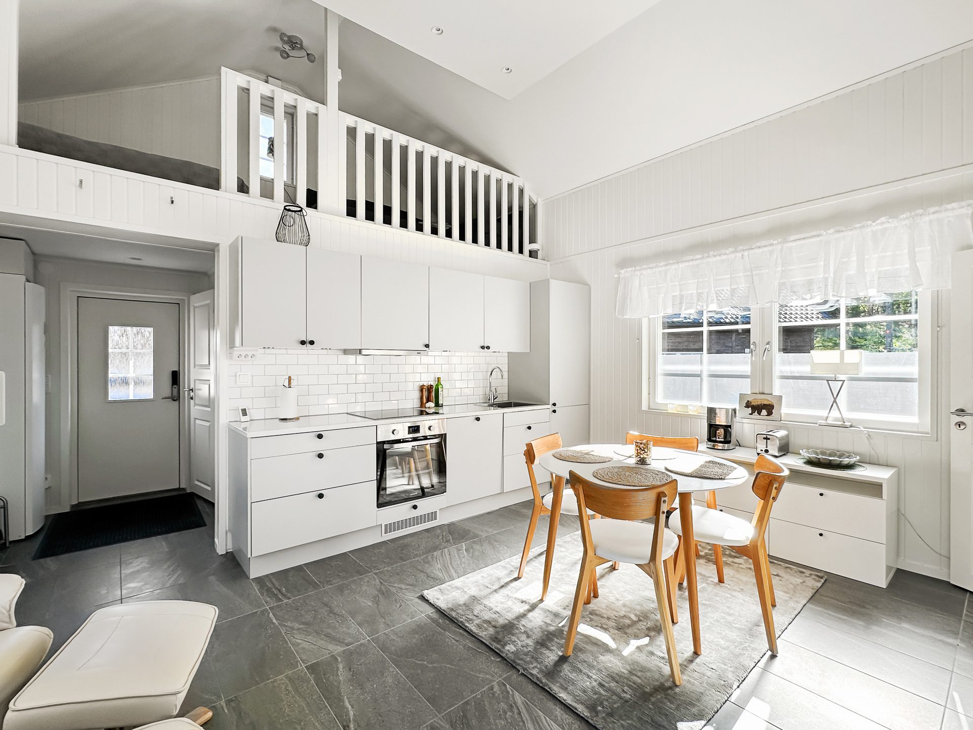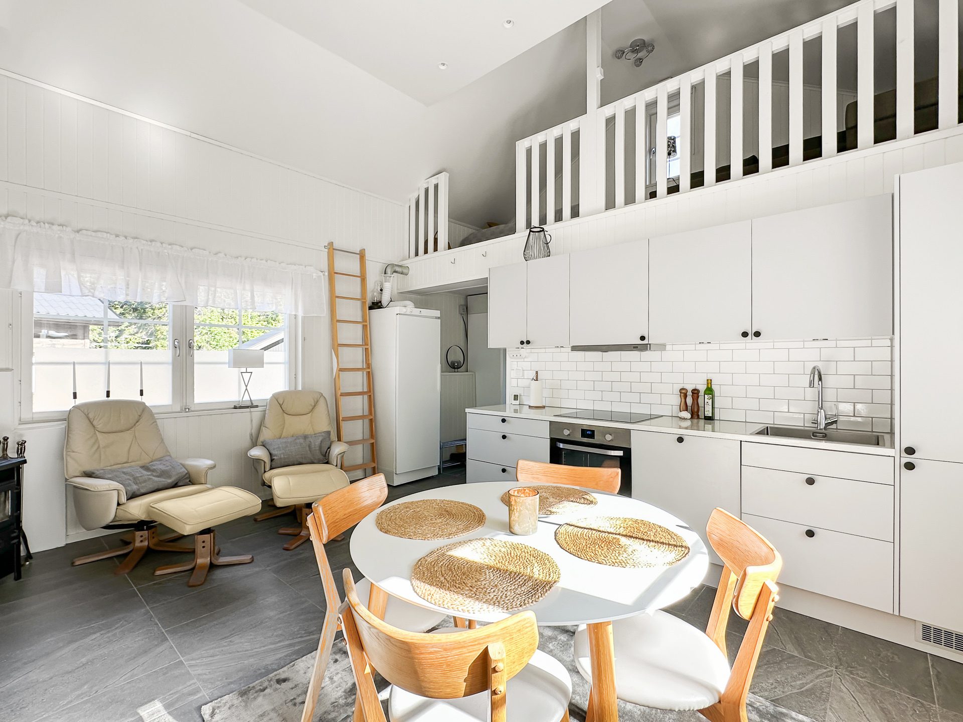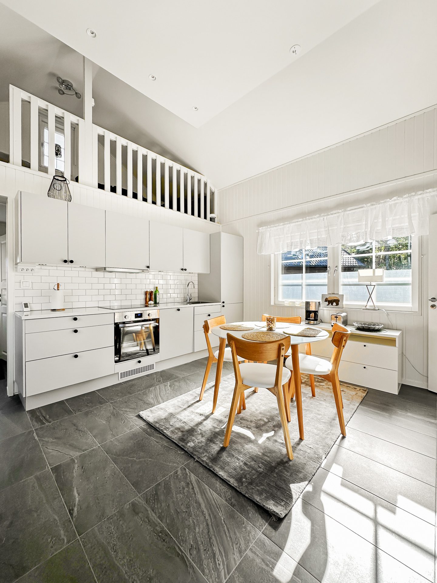Sammanfattningsvis är lägenheten modernt inredd med högkvalitativa materialval och fina ytskikt med vattenburen golvvärme i hela undervåningen. Köket kommer från danska Kitchen.