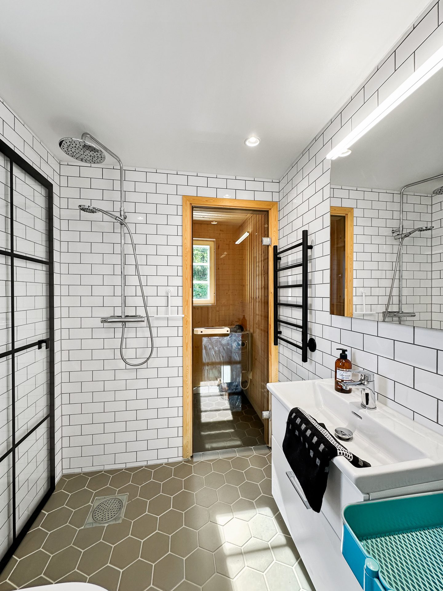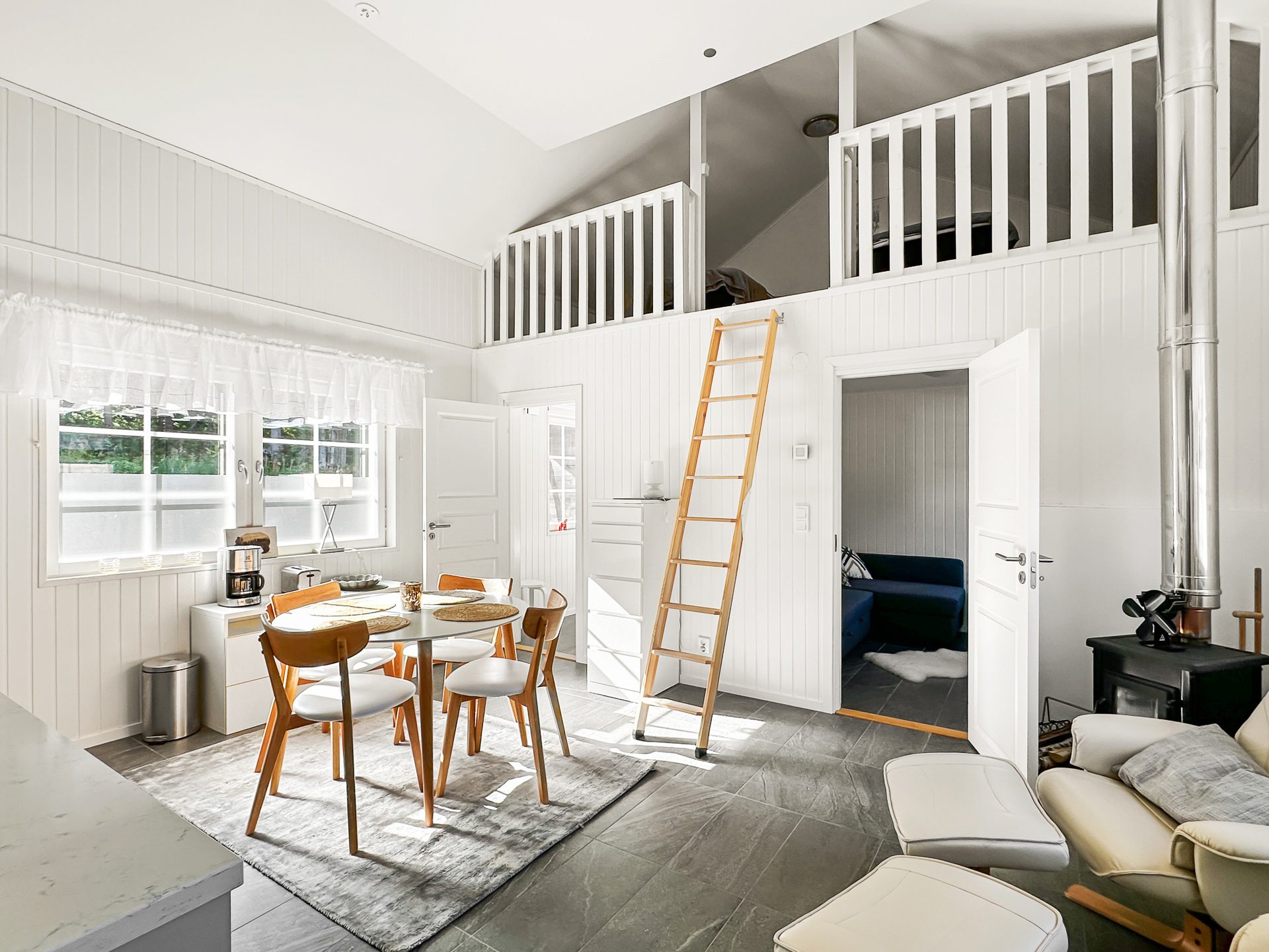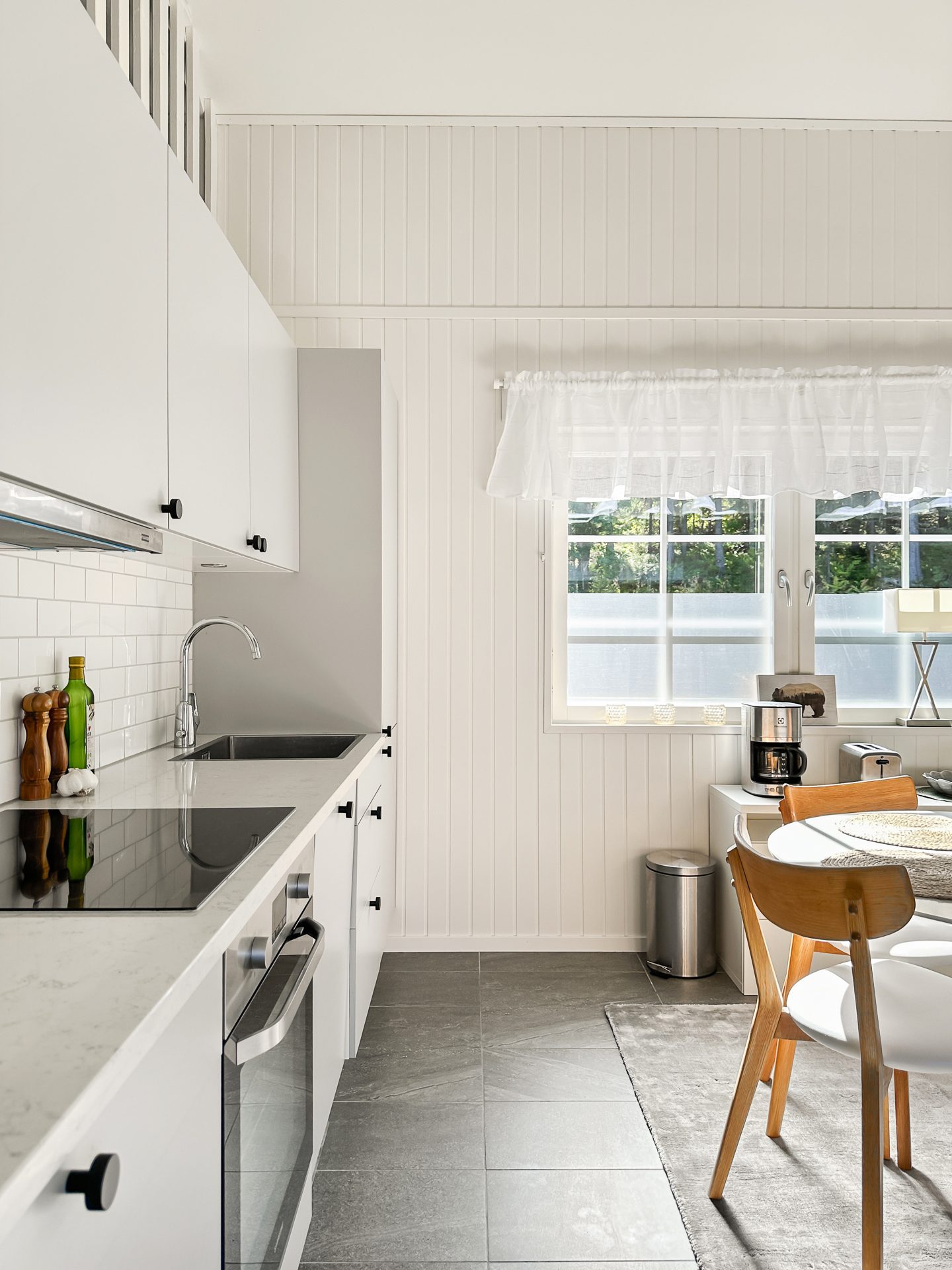 Sammanfattningsvis är lägenheten modernt inredd med högkvalitativa materialval och fina ytskikt med vattenburen golvvärme i hela undervåningen. Köket kommer från danska Kitchen.