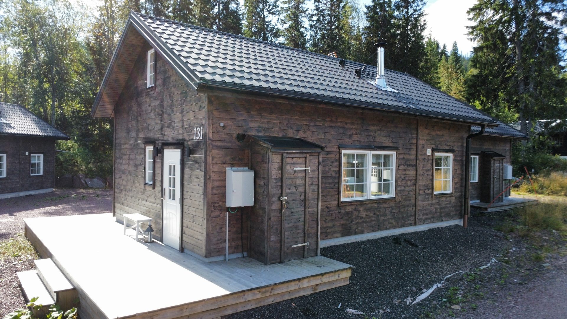 Till lägenheten finns ett utvändigt skidskåp vid sidan av entrén.