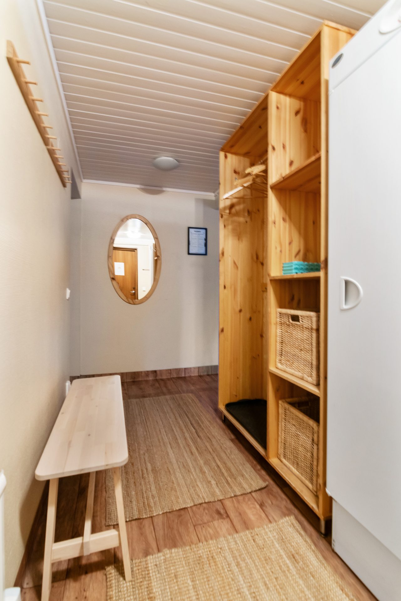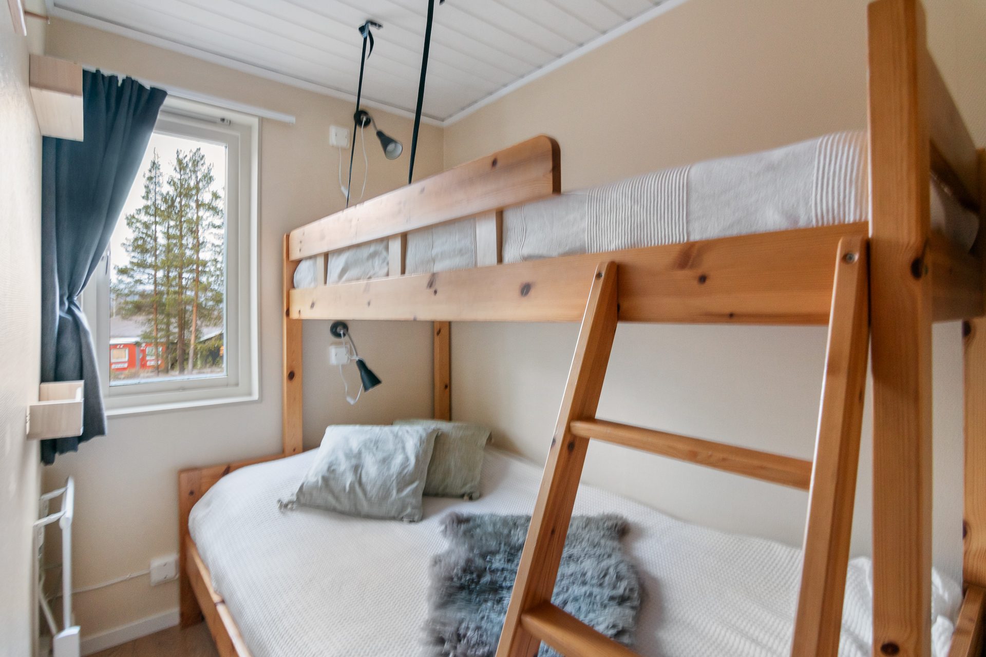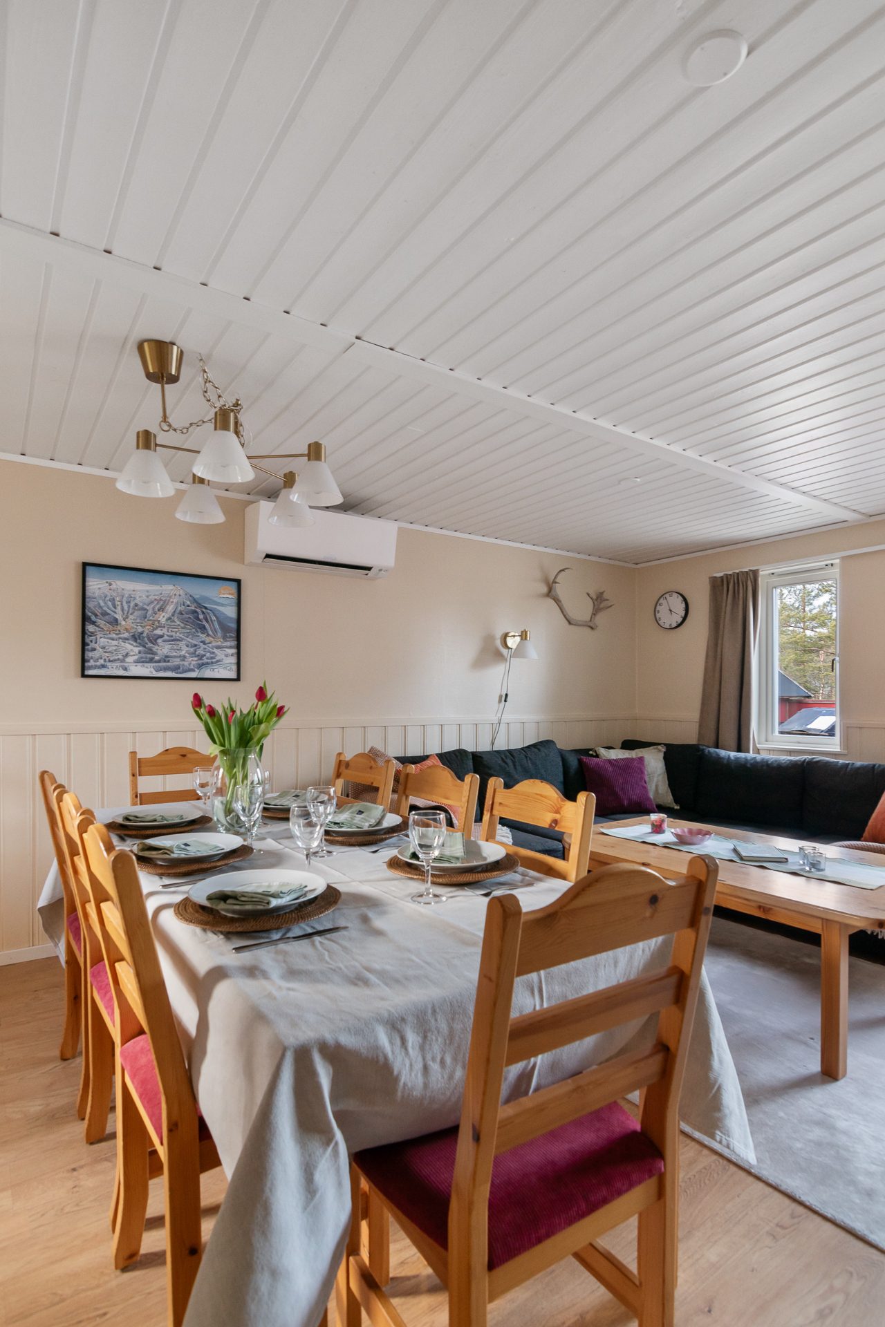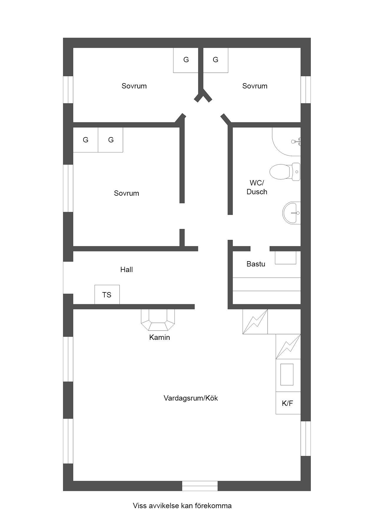 - Allmän beskrivning: Välkomnande och funktionell hall med avhängningsdel, torkskåp och sittbänk. Hallen öppnar upp mot vardagsrummet och köket med öppen planlösning. Vardagsrummet är generöst med fönster i två väderstreck, vedeldad kamin och matplats för 8-10 personer. Köket har bra arbetsytor och full, maskinell utrustning med spis, spisfläkt, kyl, frys och diskmaskin. Privat sovrumsavdelning med totalt tre sovrum. Två av sovrummen håller något mindre storlek med garderober samt plats för en större säng nere och enkelsäng upptill (2+1). Det större sovrummet. master bedroom har dubbelsäng samt garderober. Fint och välhållet badrum i anslutning till sovrummen med dusch, wc, tvättställ och vidbyggd bastu.