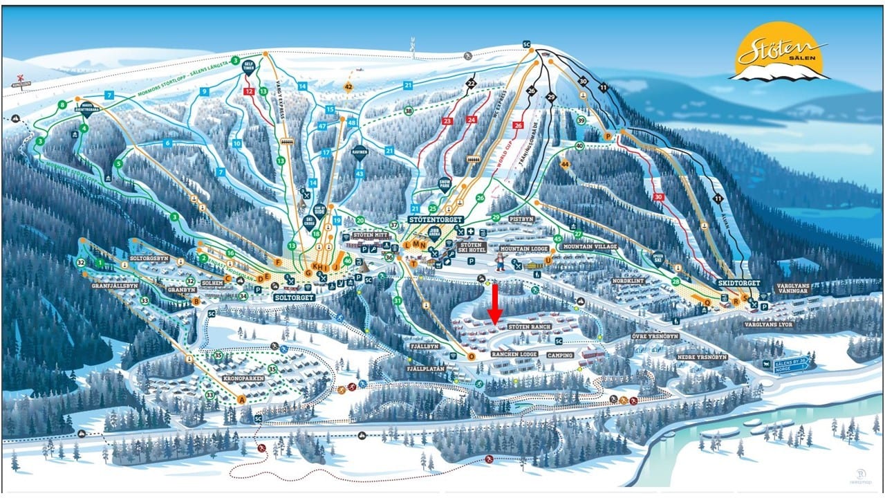 - Allmänt om området: Stöten med fjällbyn Ranchen ligger i hjärtat av de svenska fjällen. Här erbjuds du den längsta och bästa skidåkningen i Sälen. Vill du ha skidåkning i världsklass, ligger Trysil en kort biltur bort. Runt fjällbyn ligger den orörda vildmarken och denna vackra natur skänker både lugn och äventyrslust. Scandinavian Mountains Airport, fjällvärldens egen flygplats, ligger 18 minuter bort med bil. Detta skapar bra förutsättningar för smidiga och enkla resor.