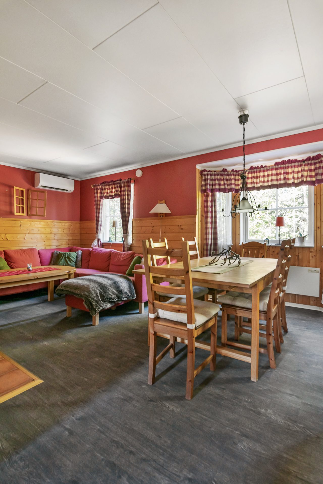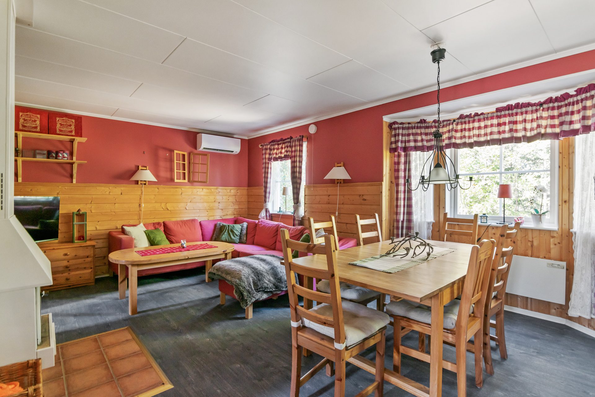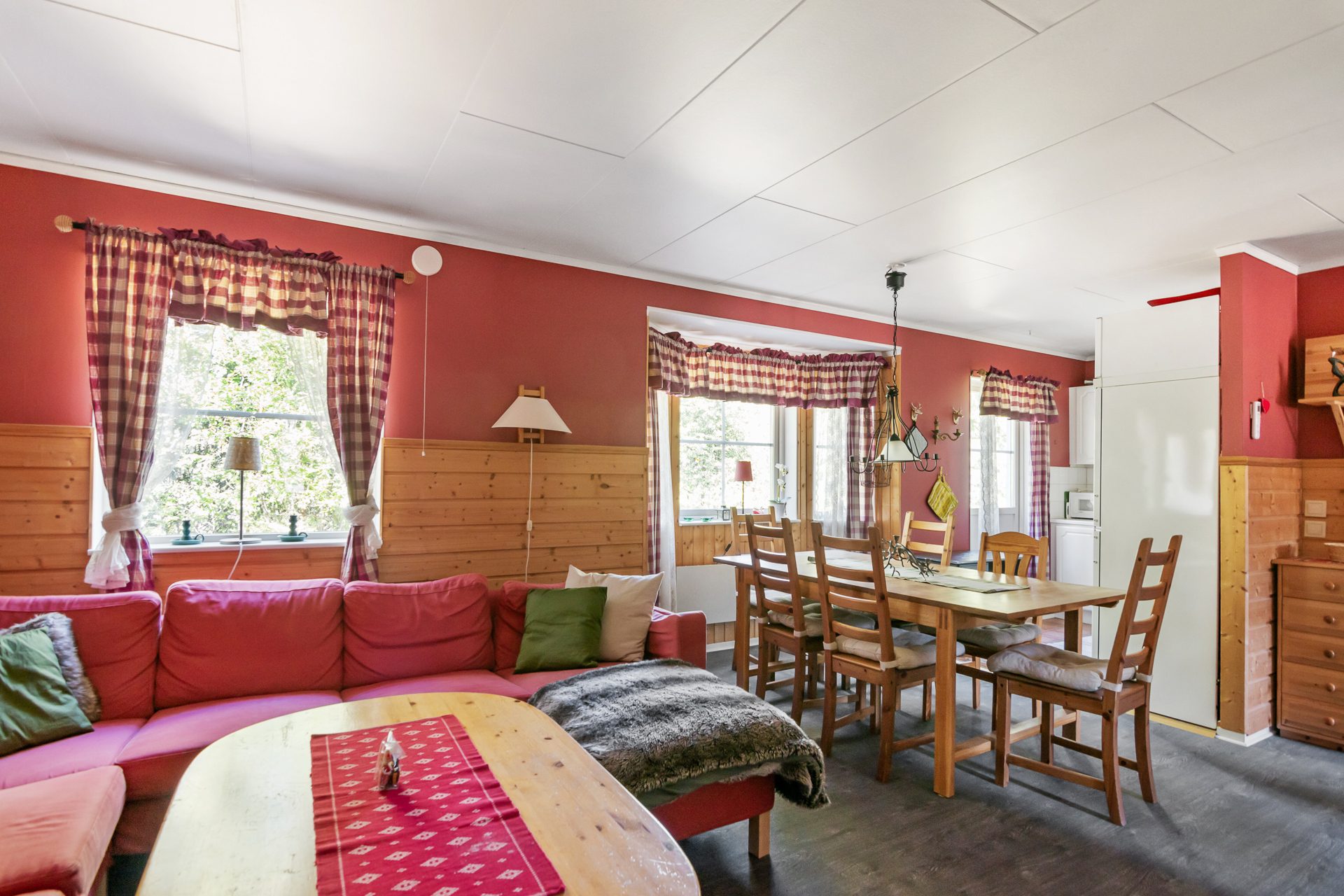 - Allmän beskrivning: Hall med avhängning och garderober. Hallen för dig vidare in i huset och öppnar upp mot vardagsrummet. Vardagsrummet är ljust med ett fint burspråk och öppen planlösning mot köket. Här finns även matplats för 6-8 personer samt utgång till en altan. Köket är välordnat med spis, fläkt, diskmaskin och kyl/frys samt god förvaring. Från vardagsrummet når du även de två sovrummen där ett är större med två våningssängar som ger 4 bäddar och ett mindre sovrum med en familjevåningssäng som ger 2+1 bäddar. Badrum med bastu ligger till höger från hallen och är utrustat med dusch, handfat, wc, tvättmaskin och varmvattenberedare samt en egen bastu. En fin altan i tre väderstreck som sträcker sig från entrésidan hela vägen runt till baksidan där du får plats med en sittgrupp för att njuta av solen när vädret tillåter.