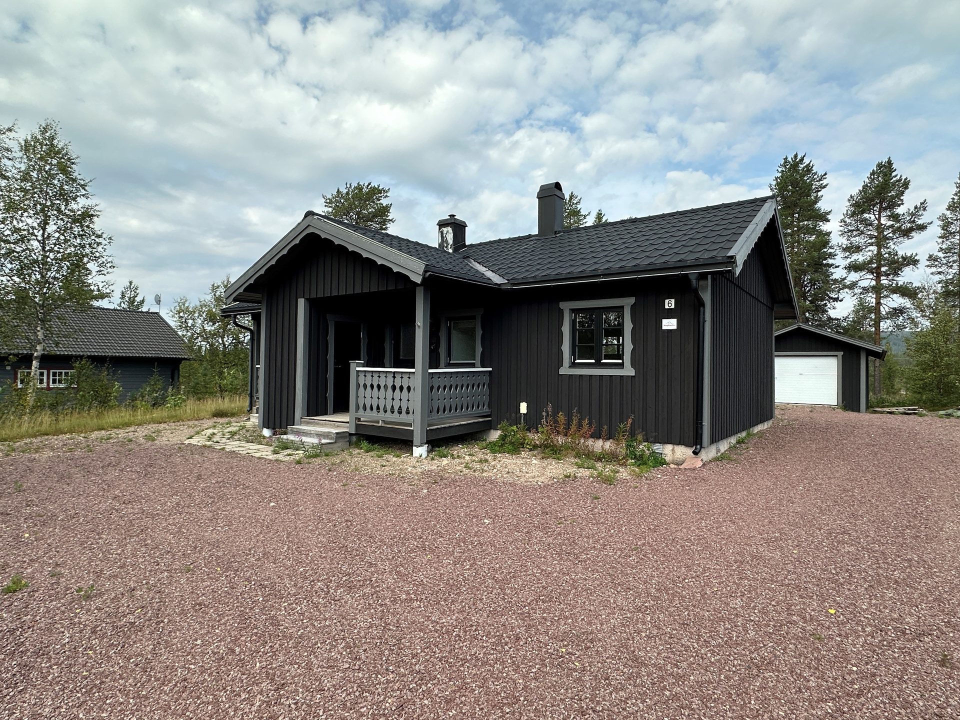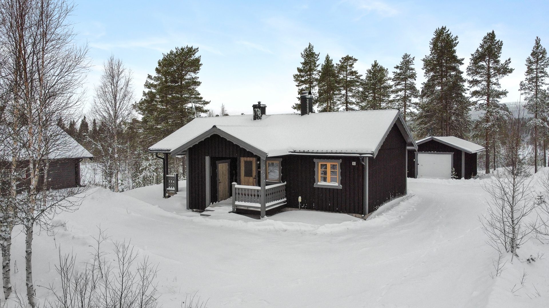 Separat garage med gästdel om ca 15 kvm. Kall vedbod med skoterförråd. Trevligt och centralt läge med skidbackarna ett par minuter från huset. Synnerligen låga driftskostnader! Grundinventarier medföljer köpet.