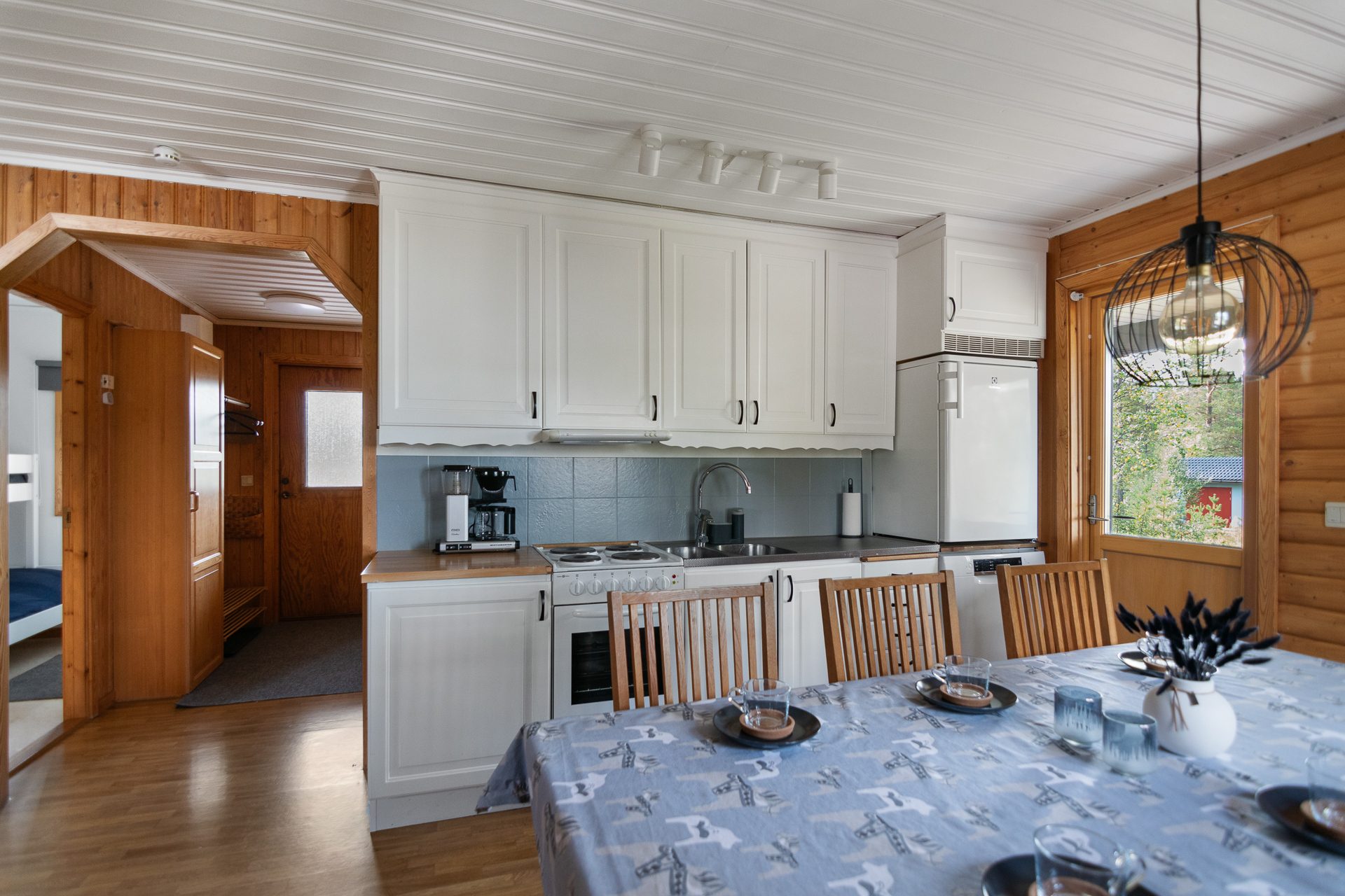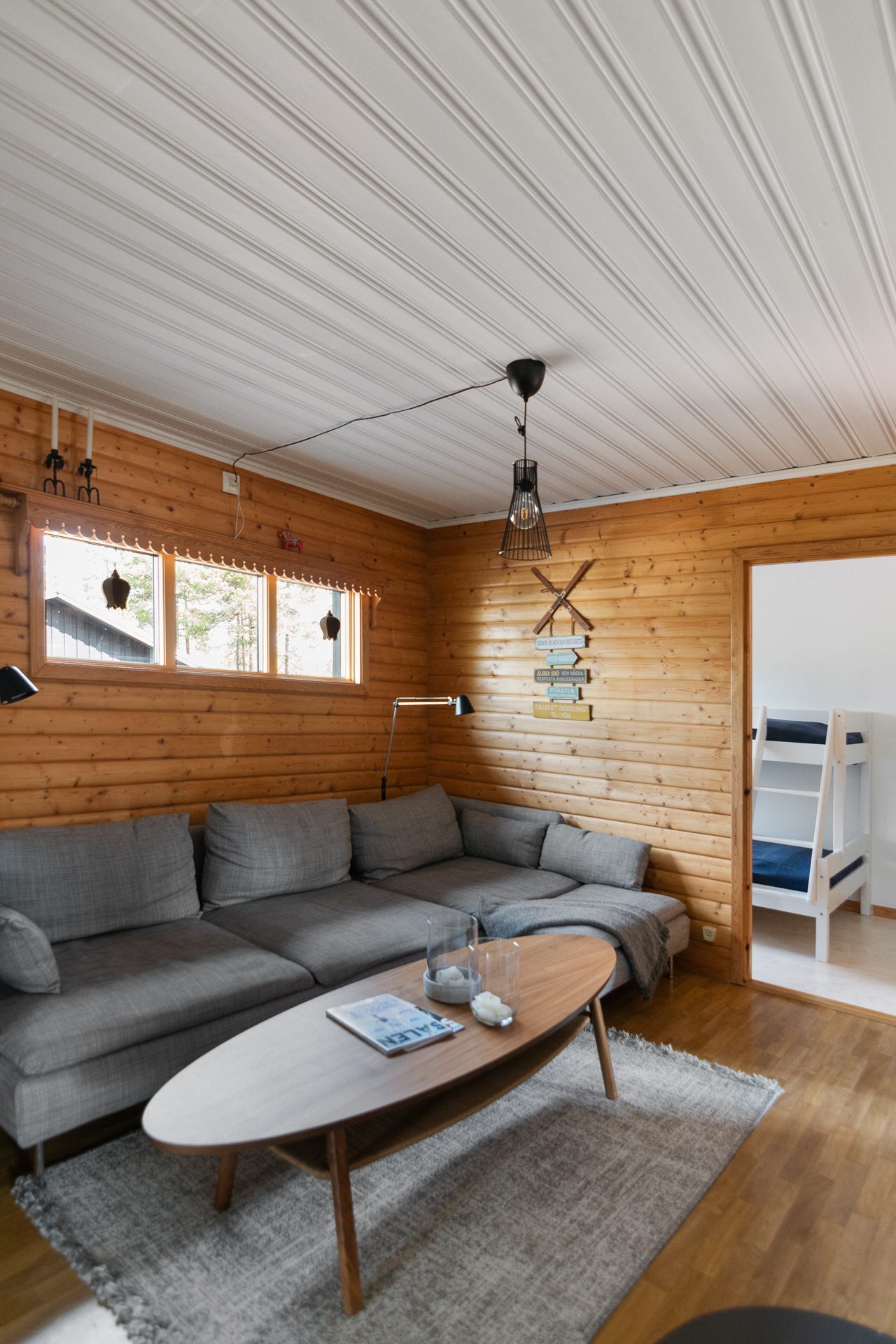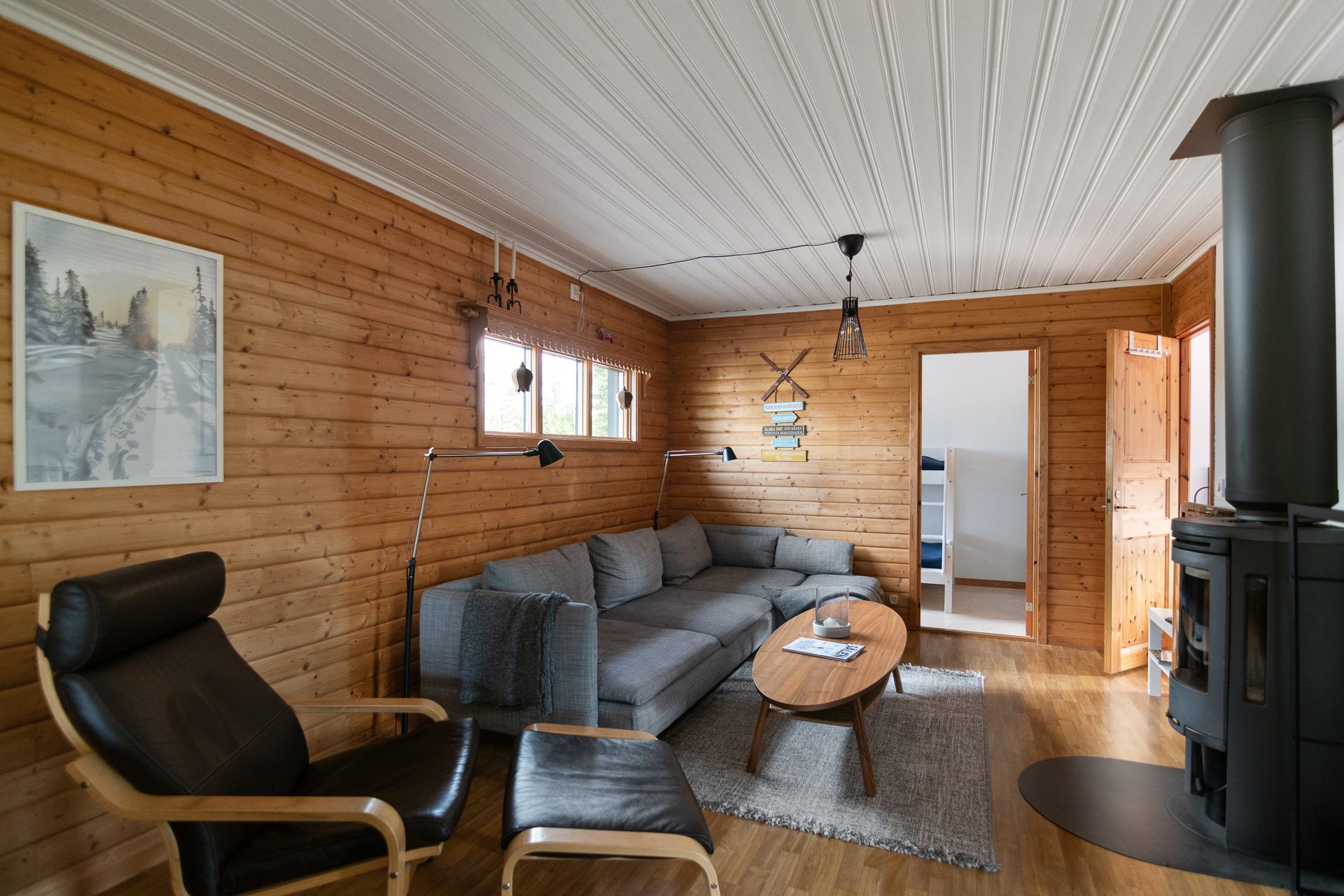 - Allmän beskrivning: Välkomnande hall med avhängning och skidförvaring. I anslutning till hallen ligger ett mindre sovrum samt badrummet med bastun. Badrummet är utrustat med wc, tvättställ och tvättmaskin. Hallen öppnar upp mot köket och vardagsrummet. Köket är fullt utrustat och har matplats för 6-8 personer. Från köket är det vidare utgång till altanen med soligt läge. Öppen planlösning mellan vardagsrummet och köket. Vardagsrumsdelen har braskamin och är lättmöblerat med plats för soffgrupp och mer därtill. I anslutning till vardagsrummet ligger två sovrum varav ett masterbedroom med dubbelsäng.