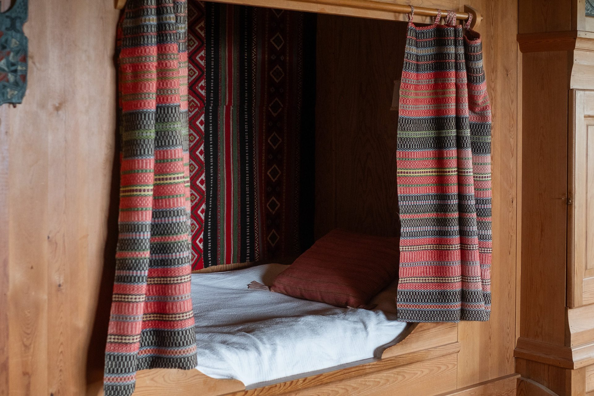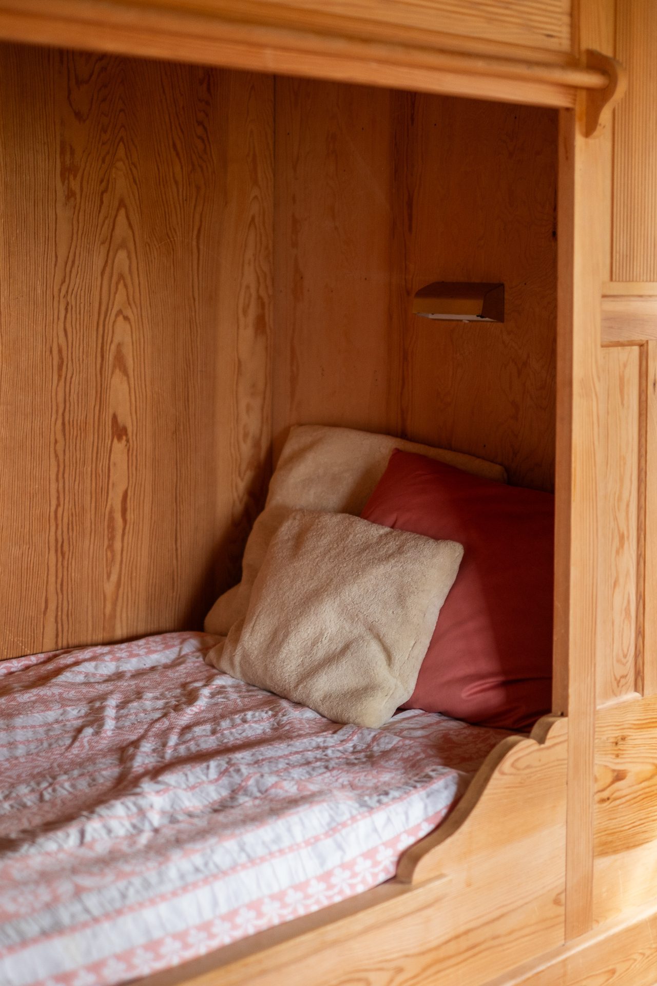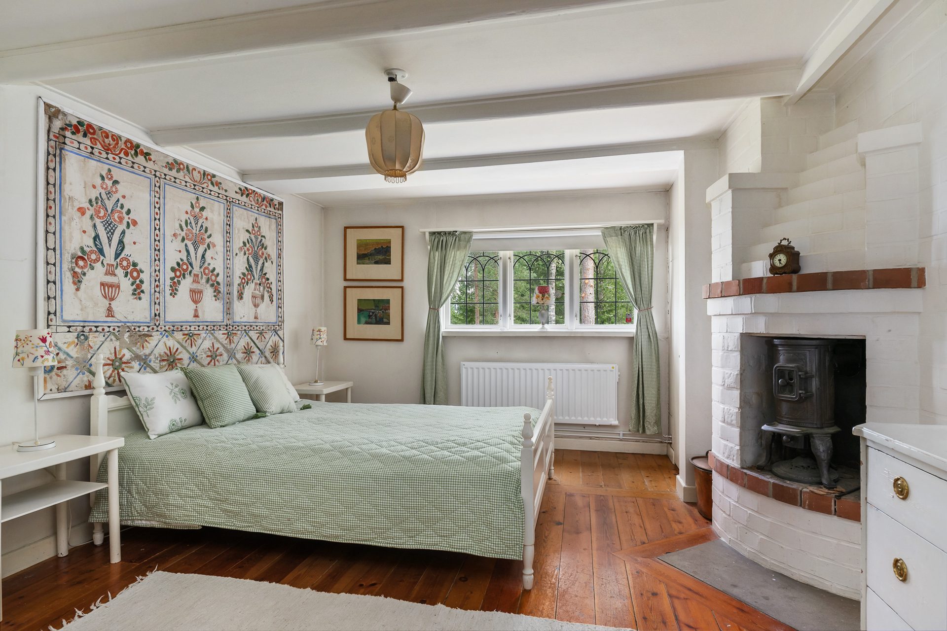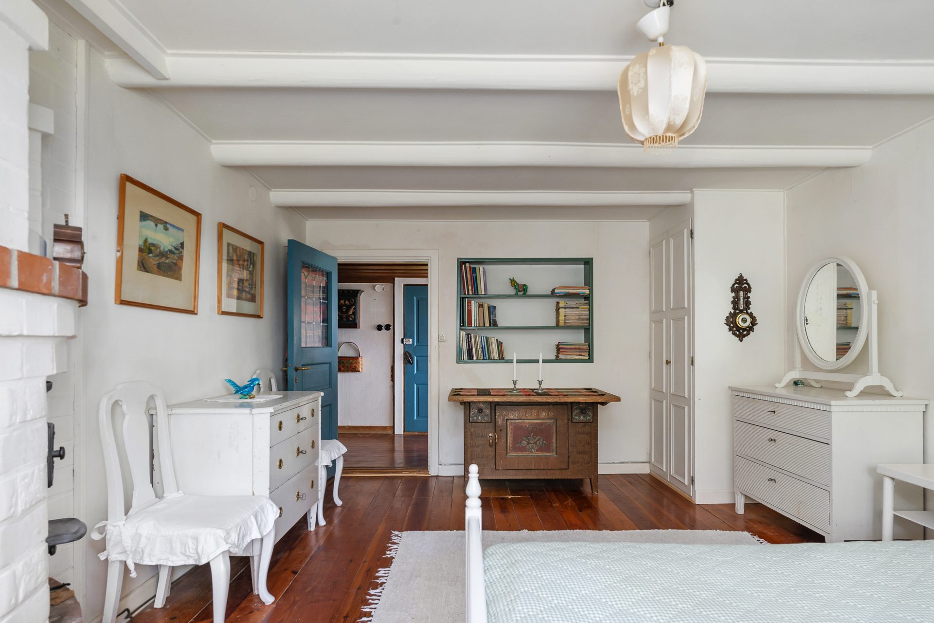 Välkomnande hall vid entrén som öppnar upp till bostadens samtliga rum. Smakfullt och lantligt kök med full maskinell utrustning. Här har det inte sparats på detaljerna med genomgående fina materialval så som bänkskiva i ek, genuina kökssnickerier från snickeri, vedspis och murad öppen spis. Vidare har köket öppen planlösning mot matsalen med vackert spröjsade fönster och vidsträckt utsikt över Siljan. Matplatsen har utrymme för 8-10 personer runt bordet samt pardörrar ut mot trädgården. Invid köket ligger masterbedroom med kamin, synliga takbjälkar och platsbyggd garderob. I fil med masterbedroom finner vi det andra sovrummet med sovalkov samt fönster mot gårdstunet. Längst in i hallen mellan sovrummet och storstugan ligger badrummet med dusch, wc, tvättställ och tvättmaskin. Husets största sociala yta är synnerligen storstugan. Här samsas platsbyggda sängar med vardagsrumsmöblemanget tillsammans med en vacker öppen spis.
