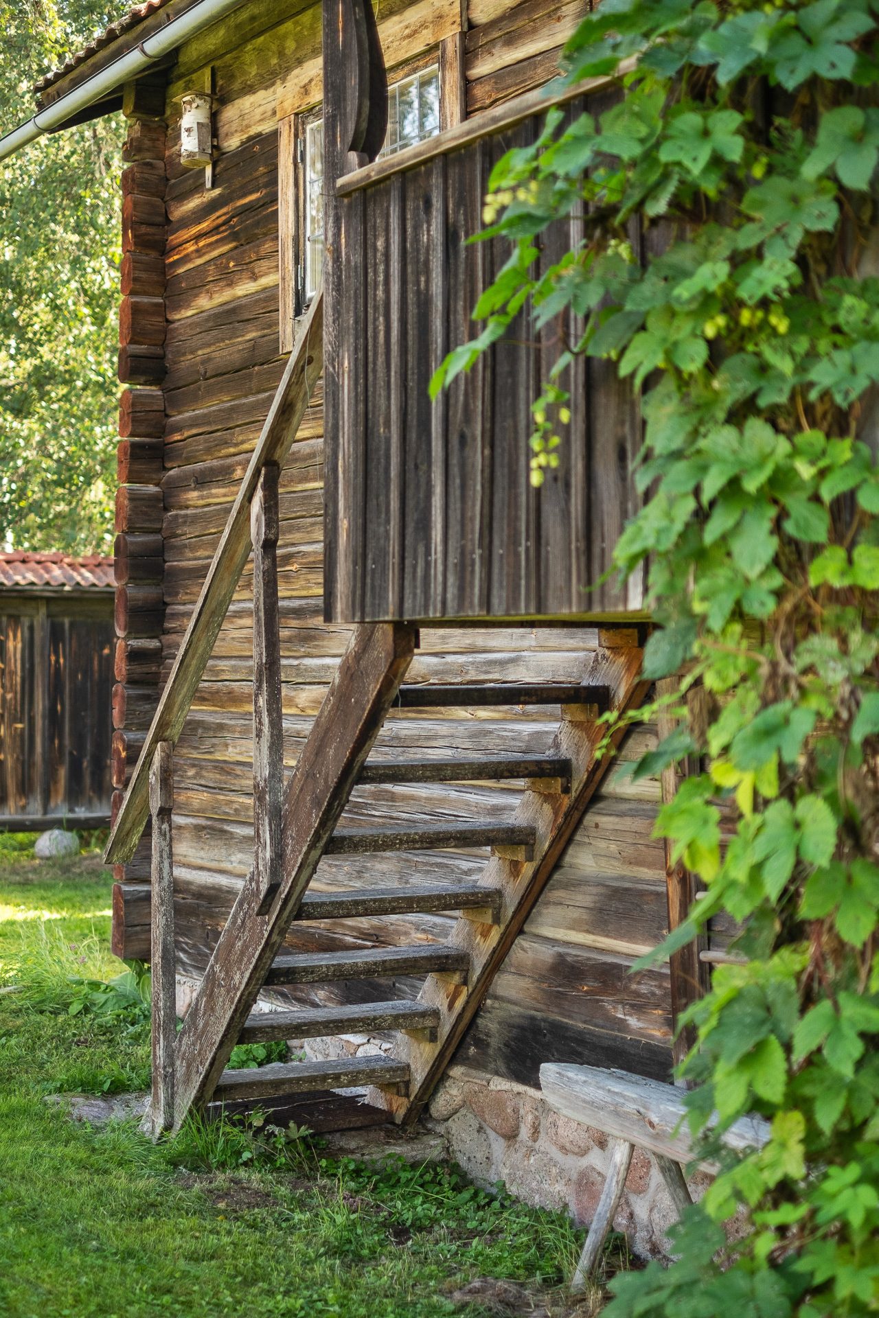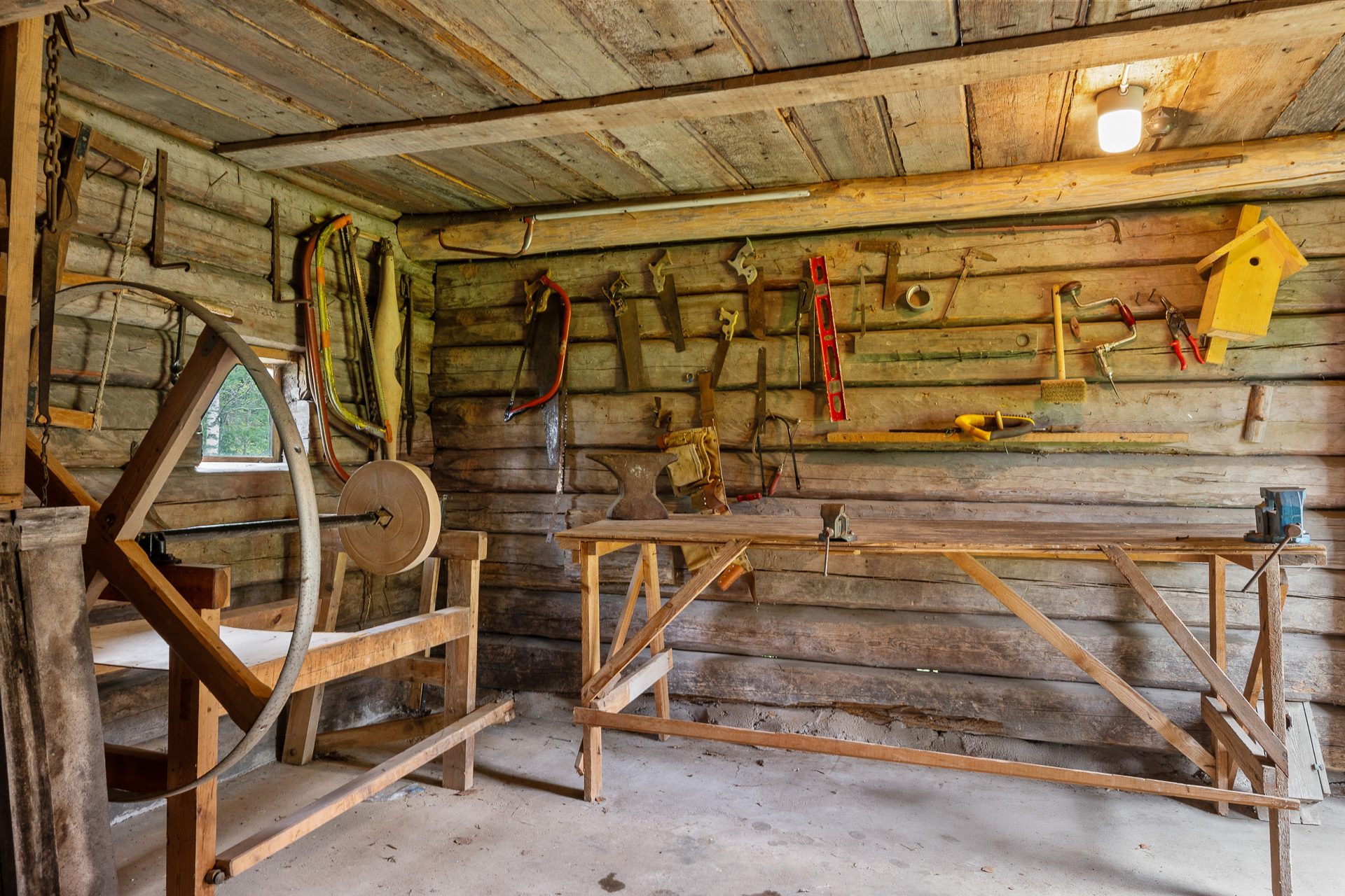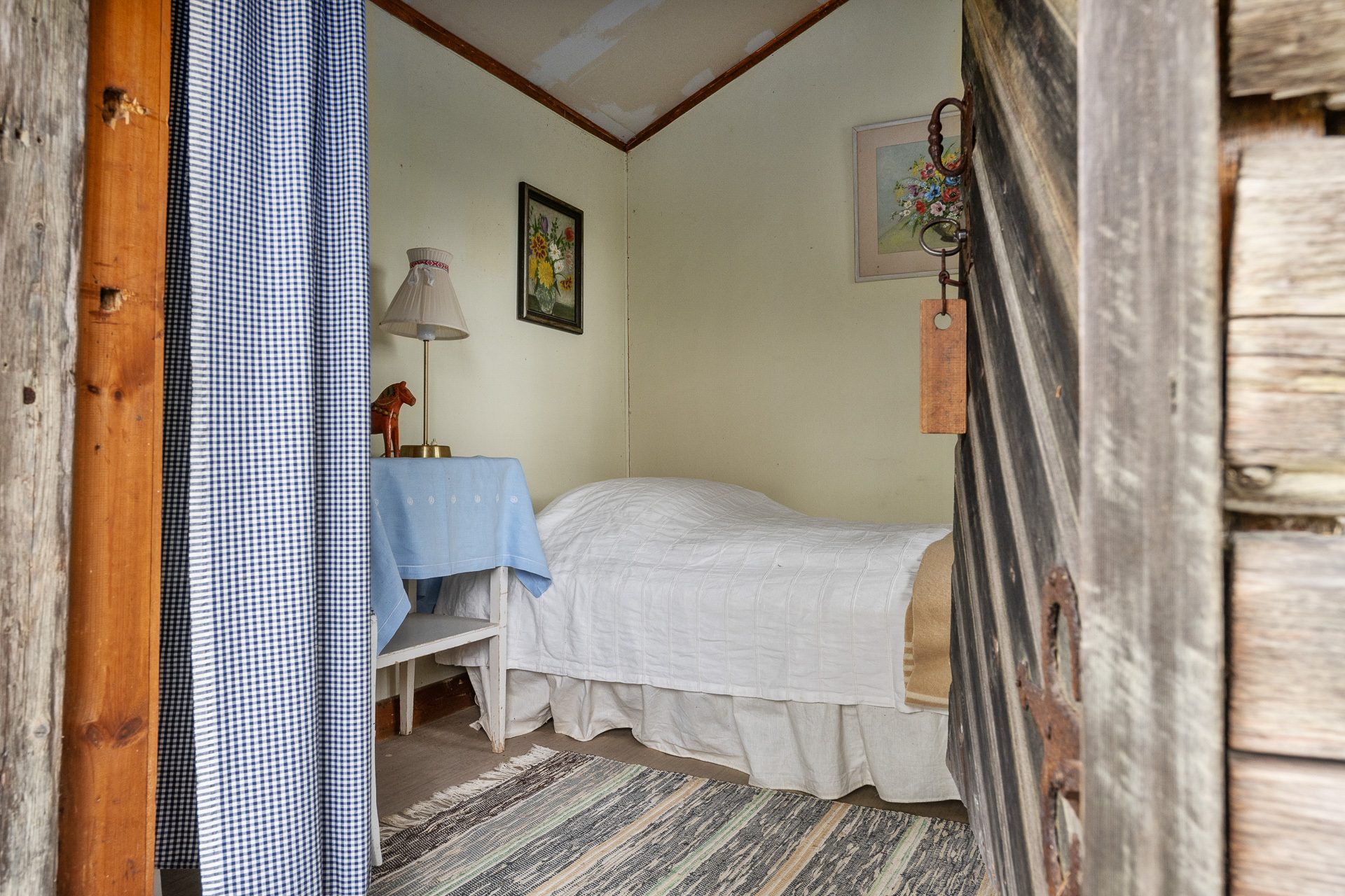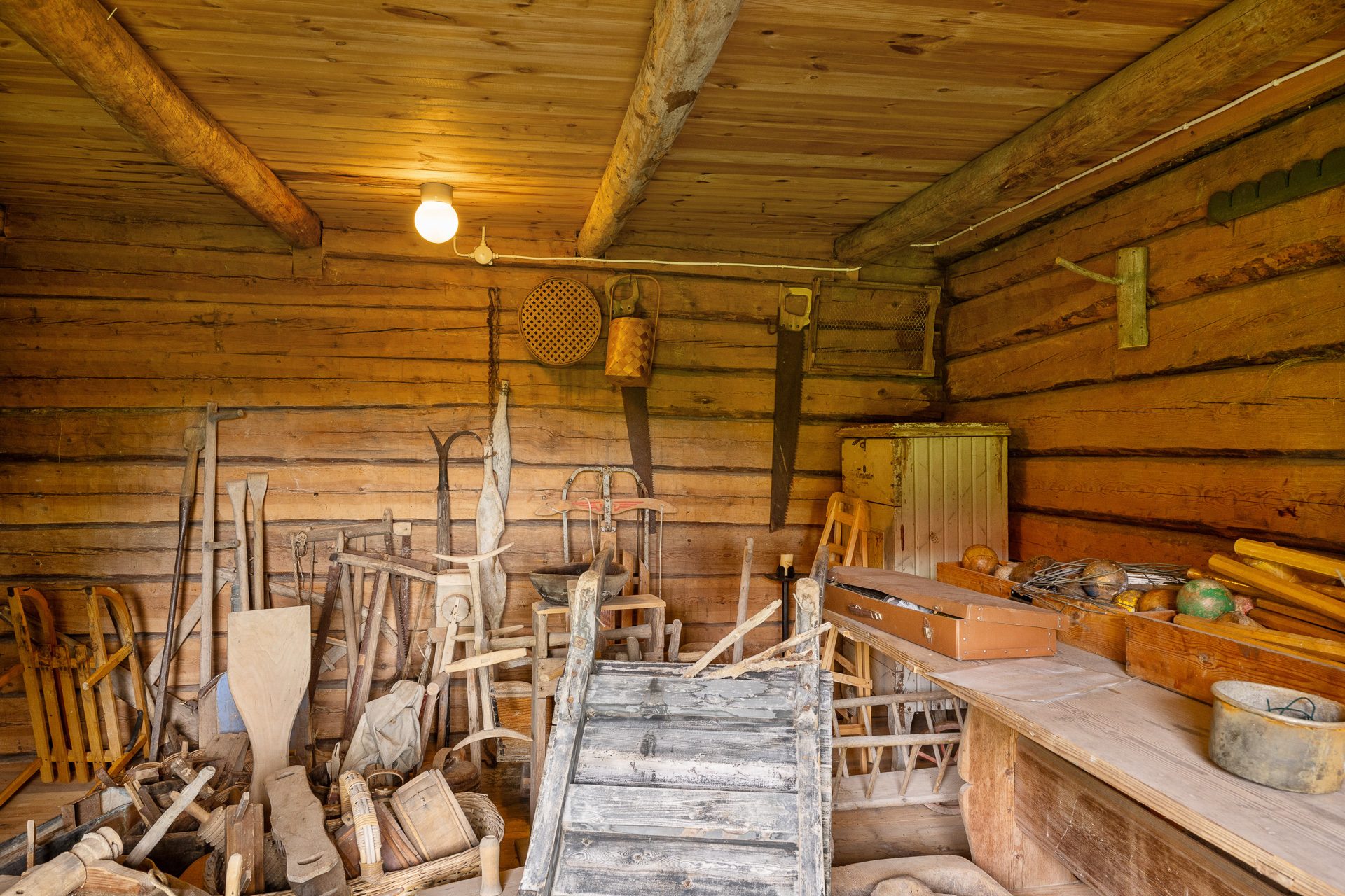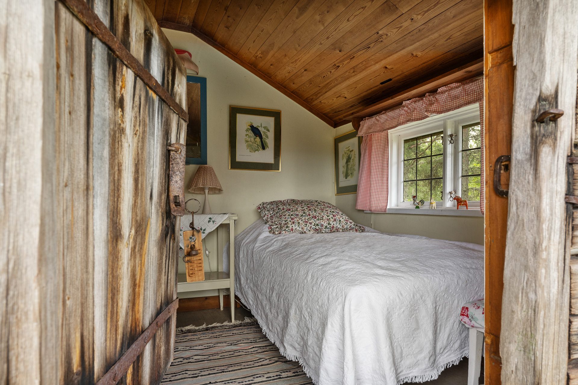 Fint gårdstun nedanför huset. Här finns en Ladugårdslänga med två generösa förrådsutrymmen. Inrett och varmbonat rum på övervåningen av byggnaden med en utvändig trappa upp till rummet samt wc och dusch i källaren. Vidare finns det ytterligare snickarbod, förråd med övervåning två inredda härbren. Lillstuga med platsbyggda sängar och utvändig veranda.