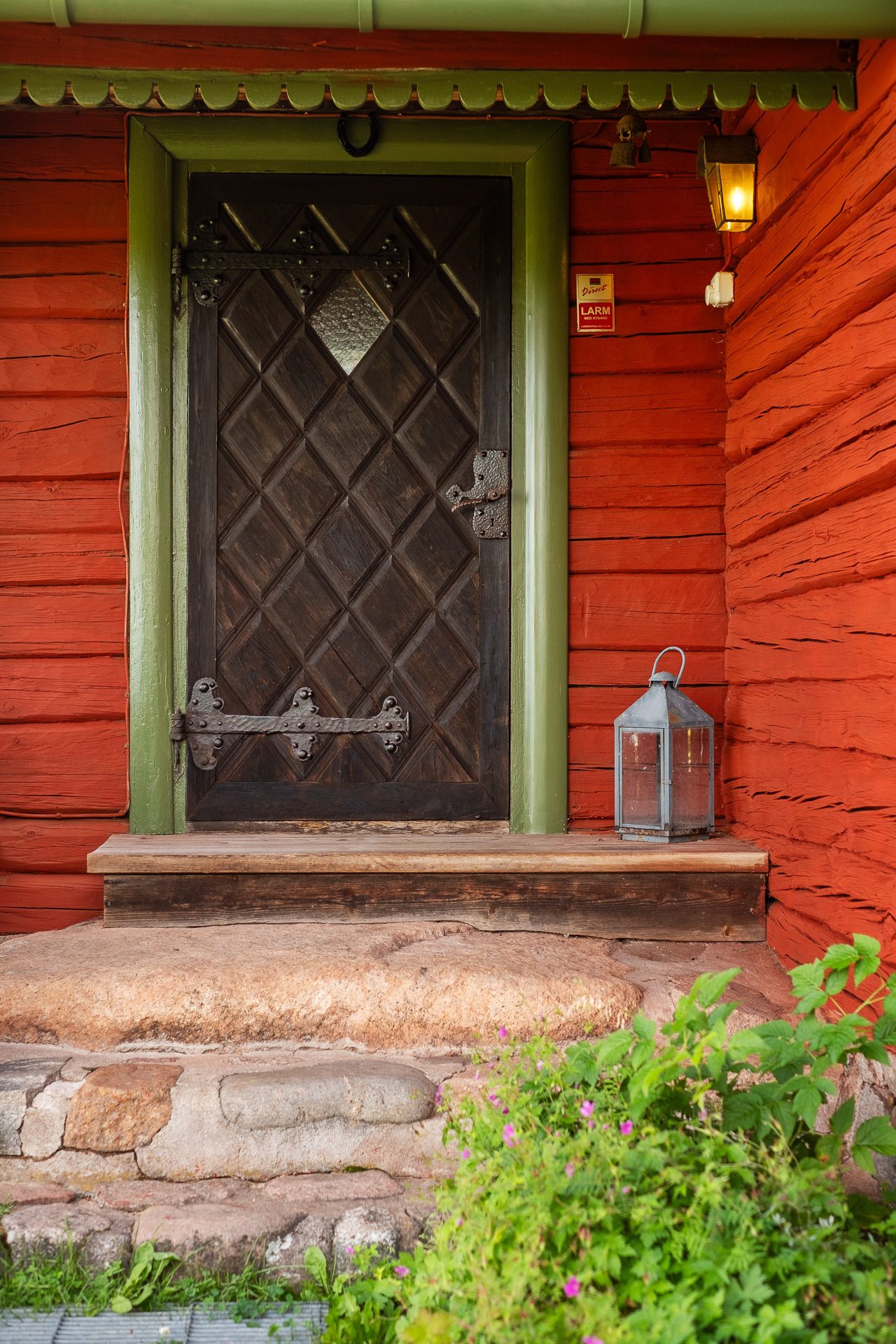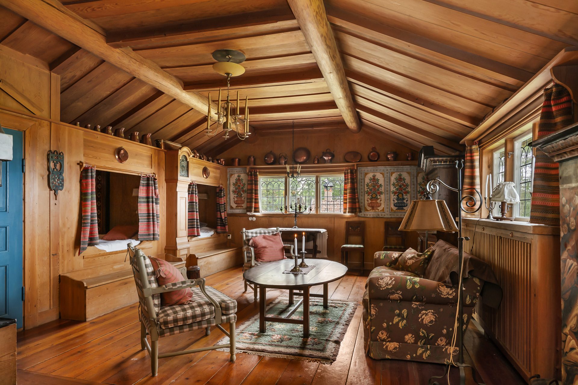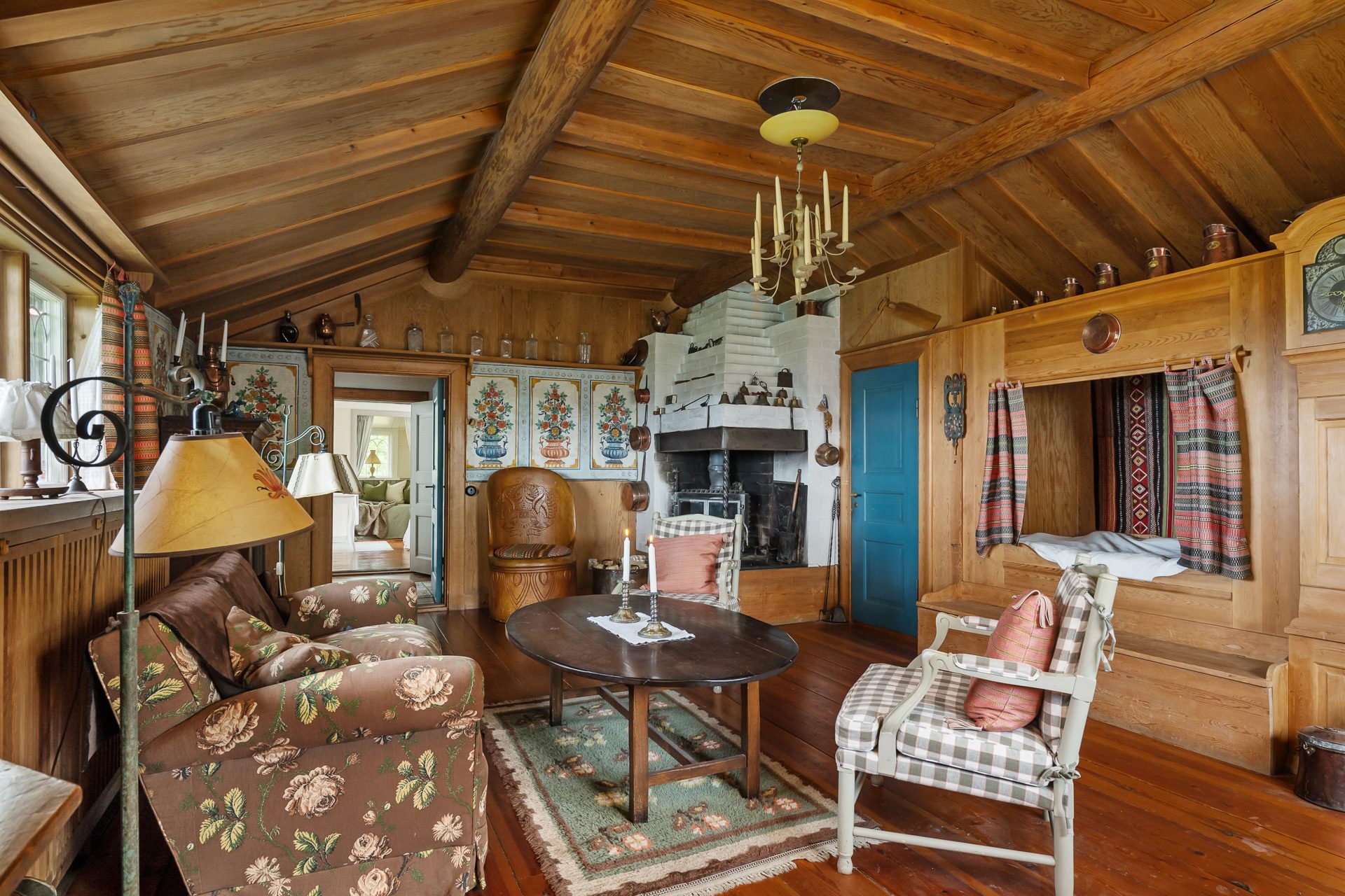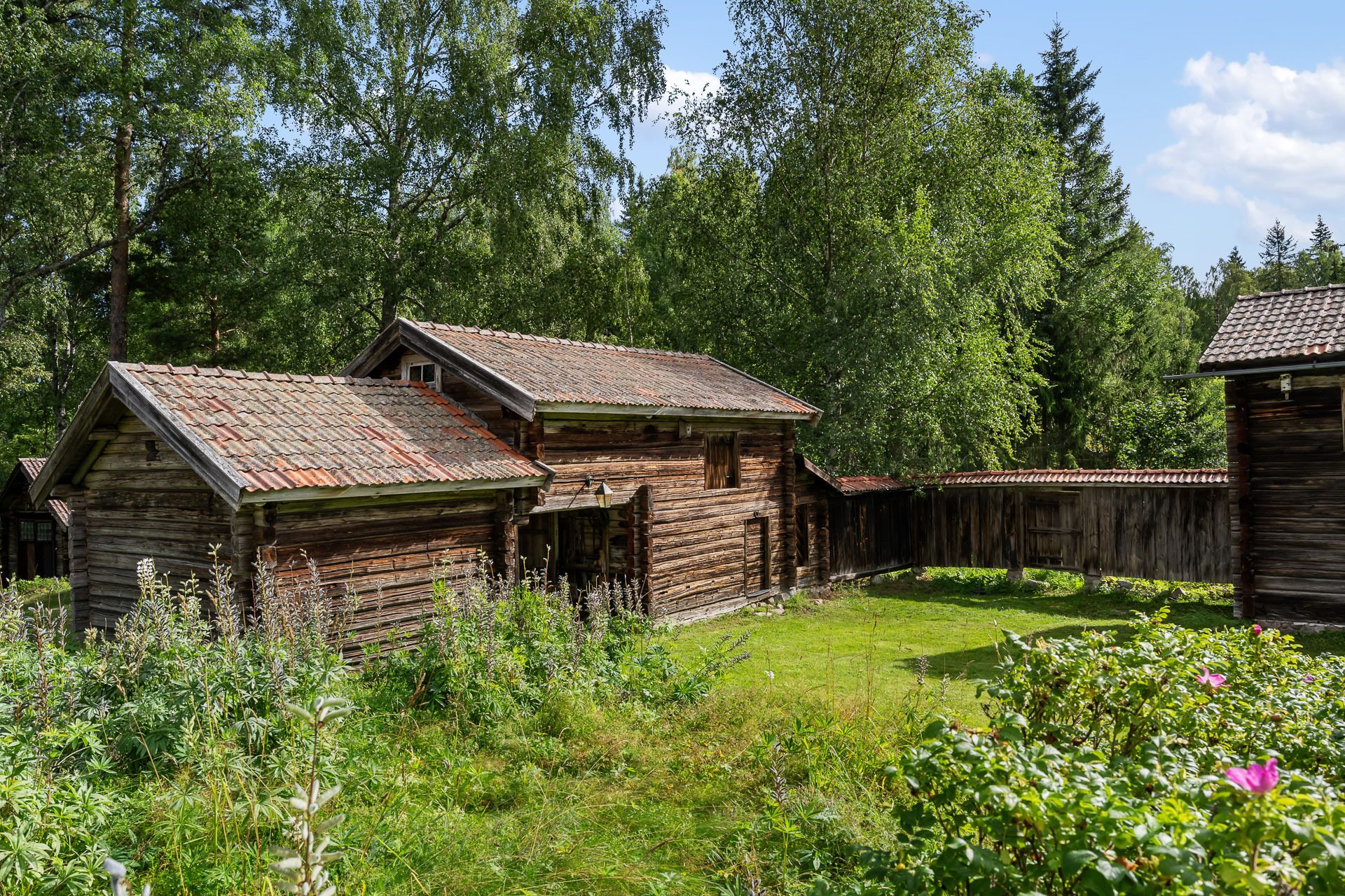 Här lät han skapa något alldeles unikt: en kringbyggd gård av timmerhus från 1500–1800-talet, flyttade hit från byarna runt Siljan. Huvudbyggnaden består av flera äldre hus som sammanfogats till en helhet med känsla och karaktär. Ett av husen skänkts senare till Leksands hembygdsgård och ersattes med ett mer funktionellt äldre hus.