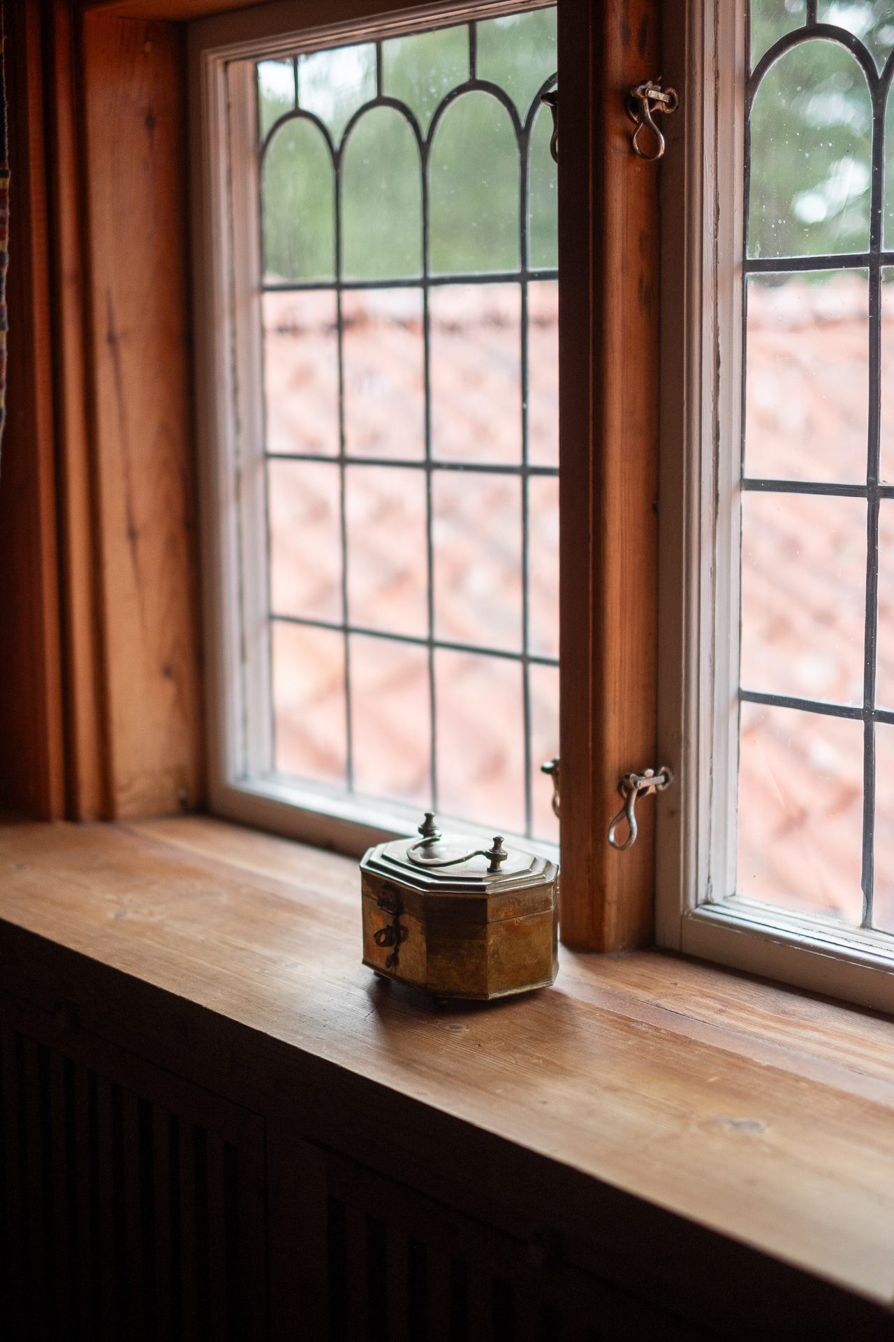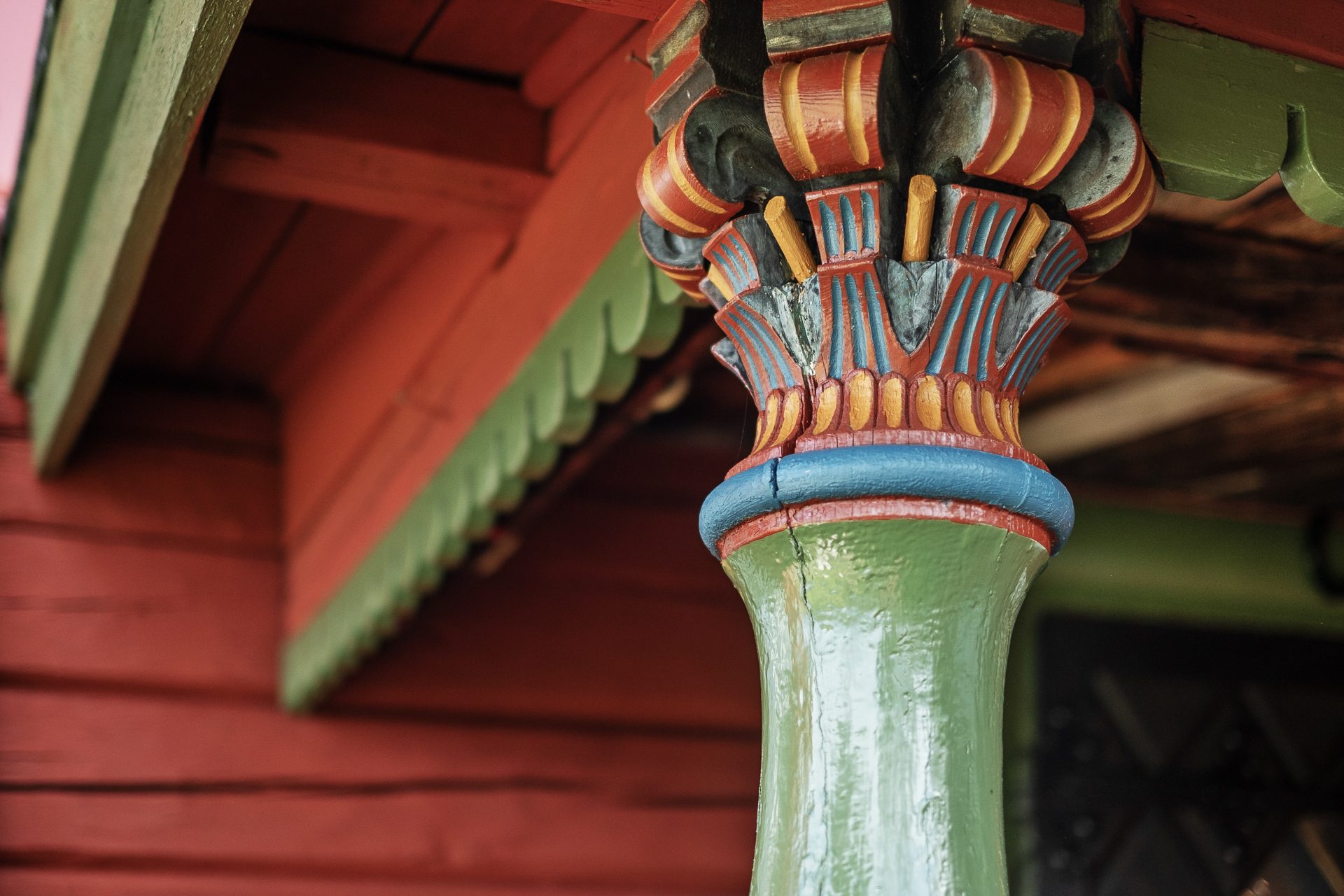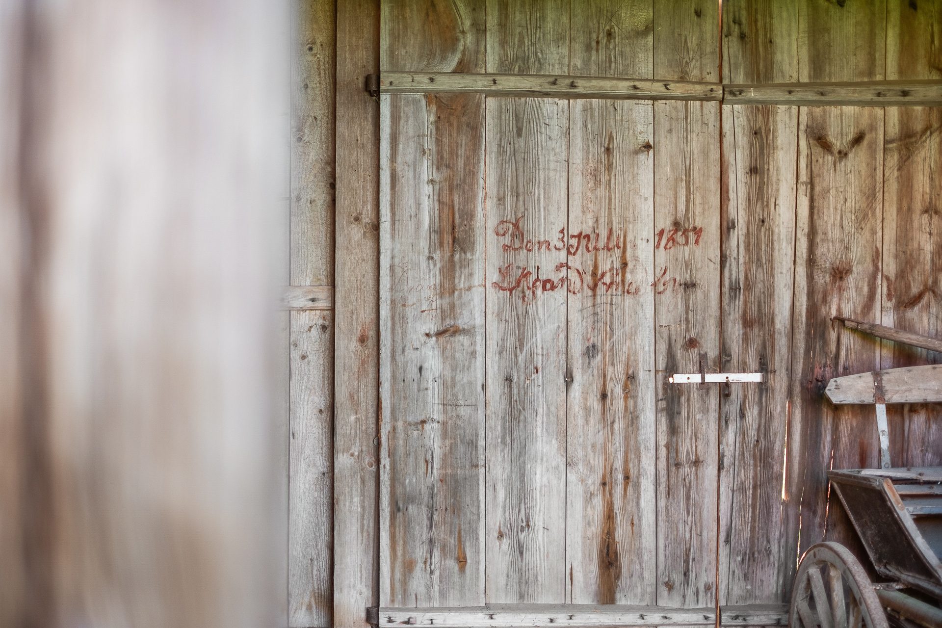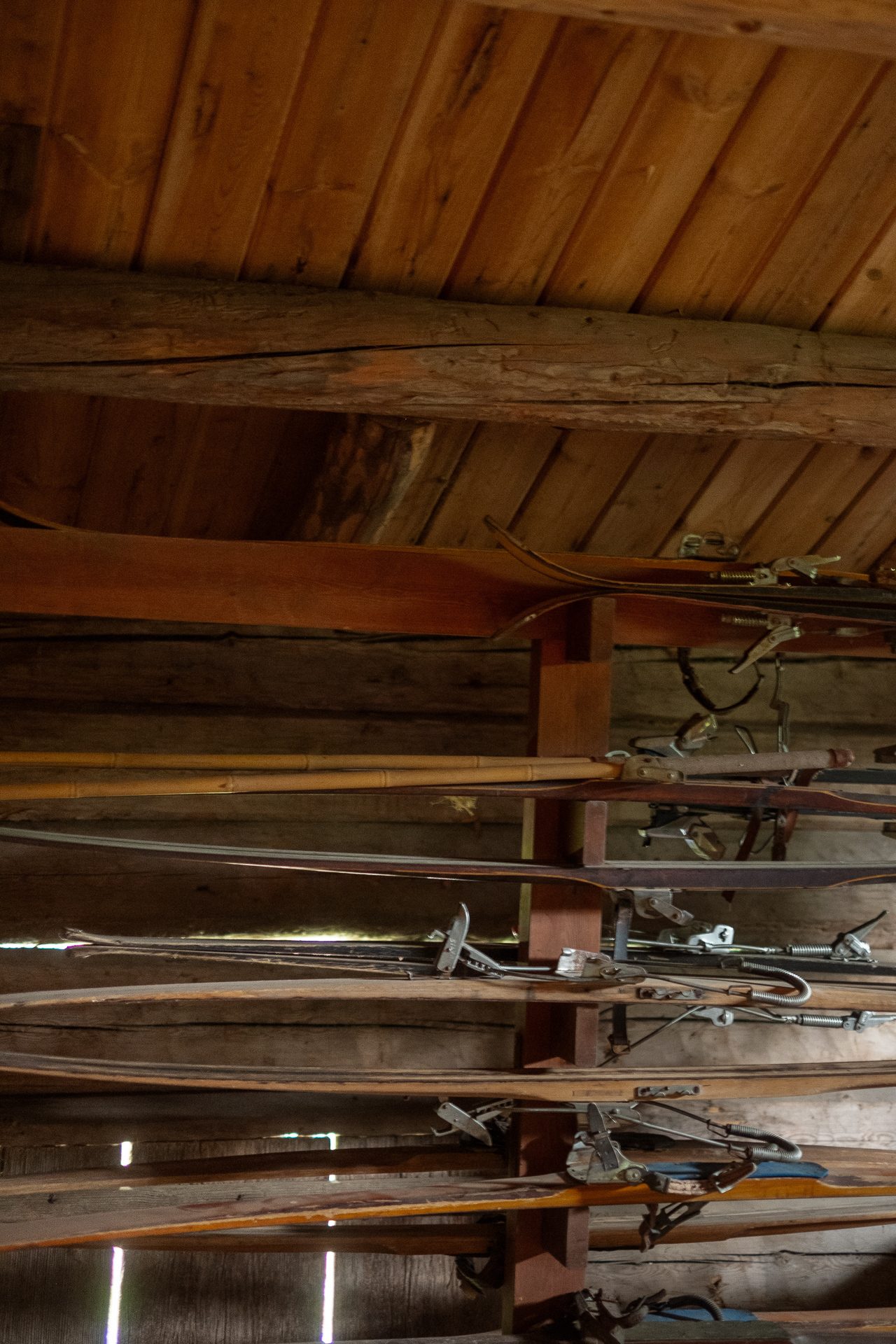 Här lät han skapa något alldeles unikt: en kringbyggd gård av timmerhus från 1500–1800-talet, flyttade hit från byarna runt Siljan. Huvudbyggnaden består av flera äldre hus som sammanfogats till en helhet med känsla och karaktär. Ett av husen skänkts senare till Leksands hembygdsgård och ersattes med ett mer funktionellt äldre hus.