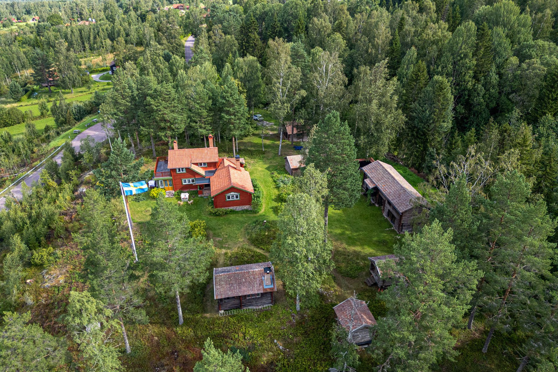 Fastigheten består av nio klassiska timmerbyggnader om totalt åtta sovrum, fördelade mellan en faluröd huvudbyggnad, uthus och härbren. Tomten på drygt 36 000 kvm kombinerar skogsmark med öppna ytor och erbjuder en avskild, rofylld miljö med nära kontakt med naturen. Här bor du ostört och privat, men med Tällbergs rika utbud av upplevelser och service inom räckhåll. Under sensommar och höst bjuder marken på bär- och svampplockning.